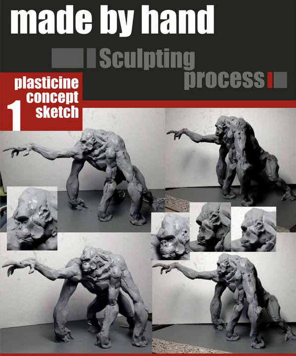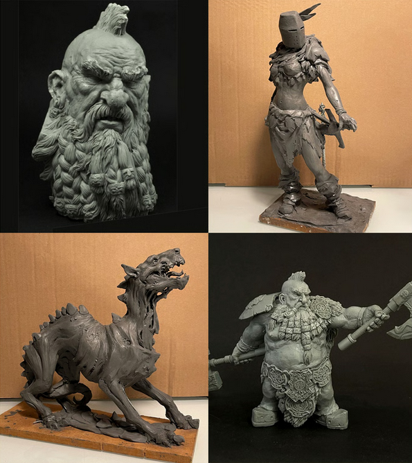I really enjoy sculpting in clay (plasticine) on a larger scale. Working big allows me to sculpt directly with my fingers, and that’s when I feel the material best. Unfortunately, I rarely make casts of large clay figures — the cost of making molds is high, and the casts themselves are heavy and fragile.