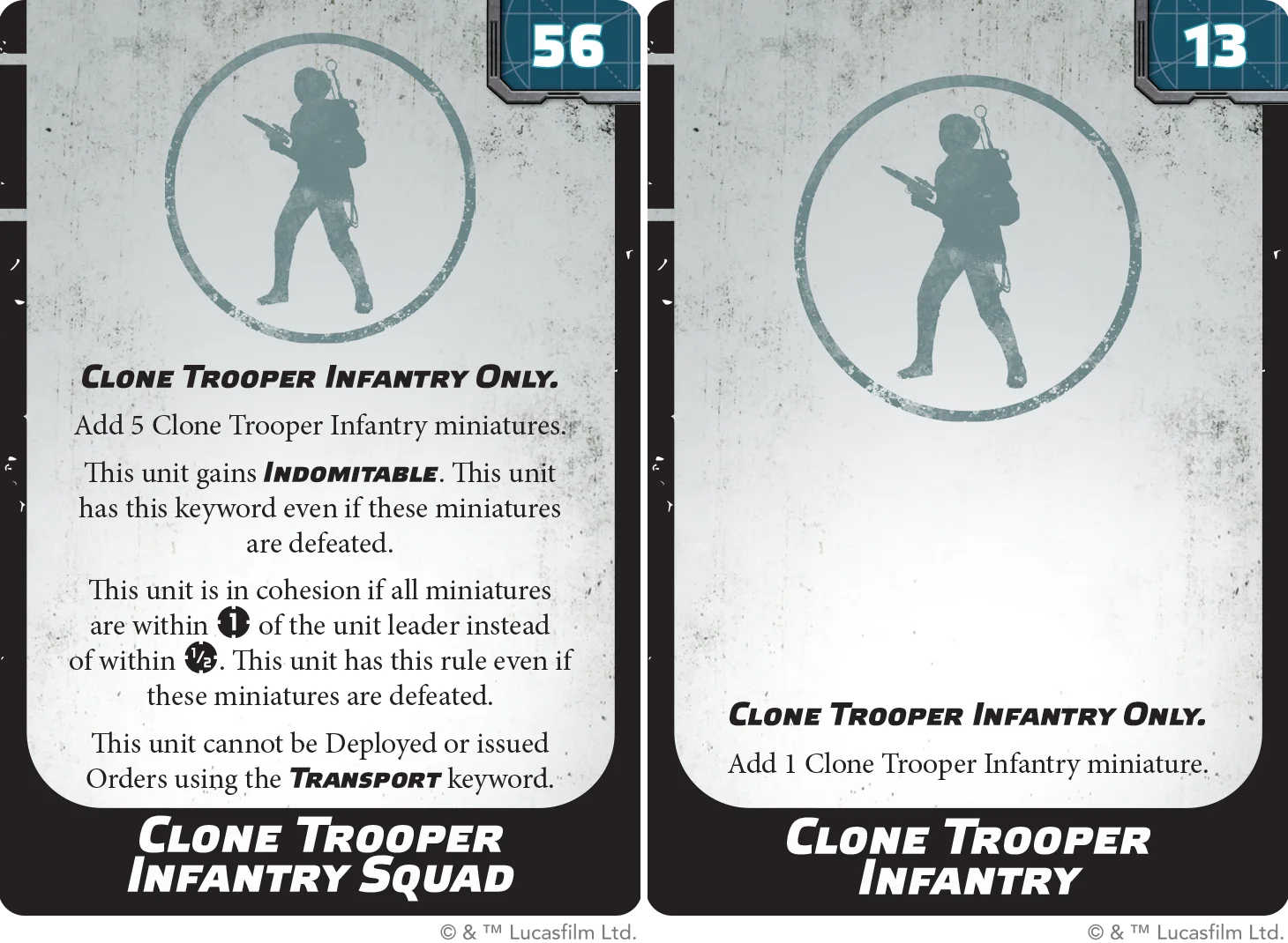 rafted using esoteric cloner technologies & trained in complete secrecy by hardened warriors and mercenaries, the Clone Troopers are the galaxy’s ultimate fighting force: disciplined beyond measure and cohesive even in the face of insurmountable odds. When led by their gifted Clone Commanders & supported by their Jedi Generals, there is little that can stop them from accomplishing their objectives on the battlefield. The Clones fight seamlessly alongside one another as if one mind, in a way only genetically identical warriors & brothers can! Join us for today’s Scene to Stats, where we review the dependable rank-and-file of the Grand Army of the Republic: the Clone Trooper Infantry!