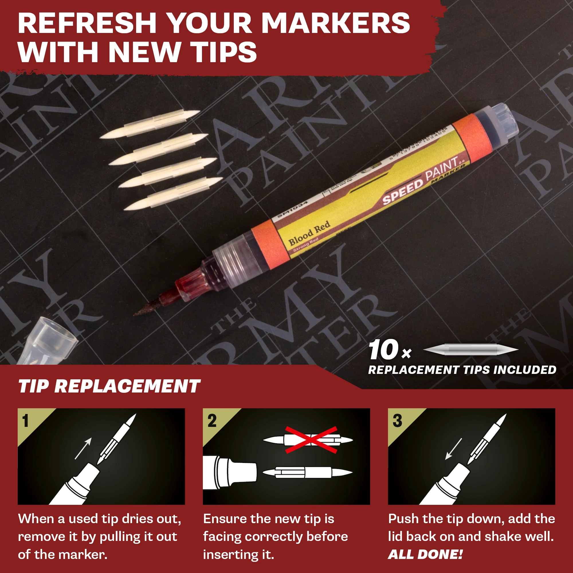 Designed exclusively for Speedpaint Markers and available online only, these replacement tips mean you’ll stay stocked and ready for whatever project comes next: army building, competition pieces, or creative experiments.