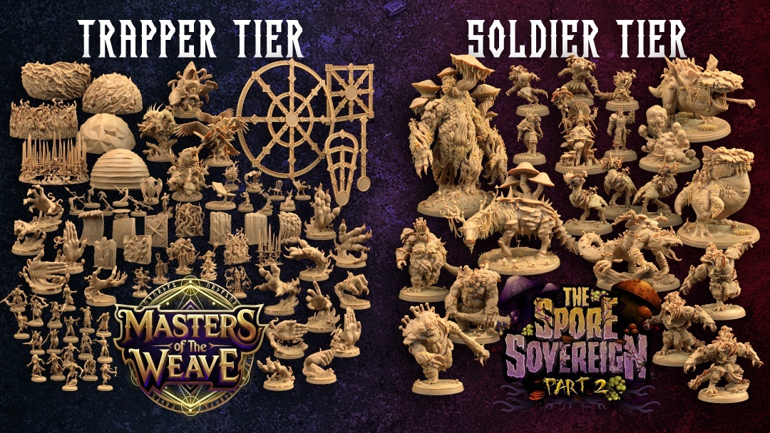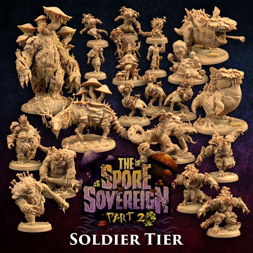 Soldier Tier continues to fill the air with spores as the Spore Sovereign Pt.2 marches from the clouds. This month is another bumper release as the spores have settled across the lands. Twisted roots digging in deep and bringing fungal life to those who have fallen to the Spore. You might just recognise some of these monsters from the past; buried beneath layers of spore spreading mushrooms and roots!