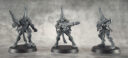 Die Warpspinnen bieten außer den Köpfen fast keine Optionen, dafür gibt es neben den fünf Helmen insgesamt acht unbehelmte Köpfe zur Auswahl. Neben dem Modell mit der Exarchen-Option stehen noch drei weitere Modelle auf einem kleinen Ruinenteil. Diese vier Ruinenteile sind separat und die drei der Truppler sind untereinander austauschbar. Wer sein eigenes Basedesign verwenden möchte kann diese auch weglassen. Dazu kommen noch drei Dekoelemente welche kleine Warpblitzeffekte darstellen sollen die man frei auf die Modelle verteilen kann. Bei den Warpspinnen fallen die gespaltenen Schulterpanzer nicht ganz so krass auf, da die Warpsprunggeneratoren diese teilweise überdecken.