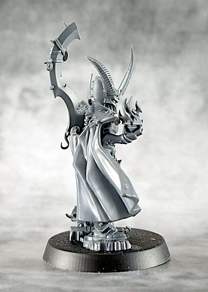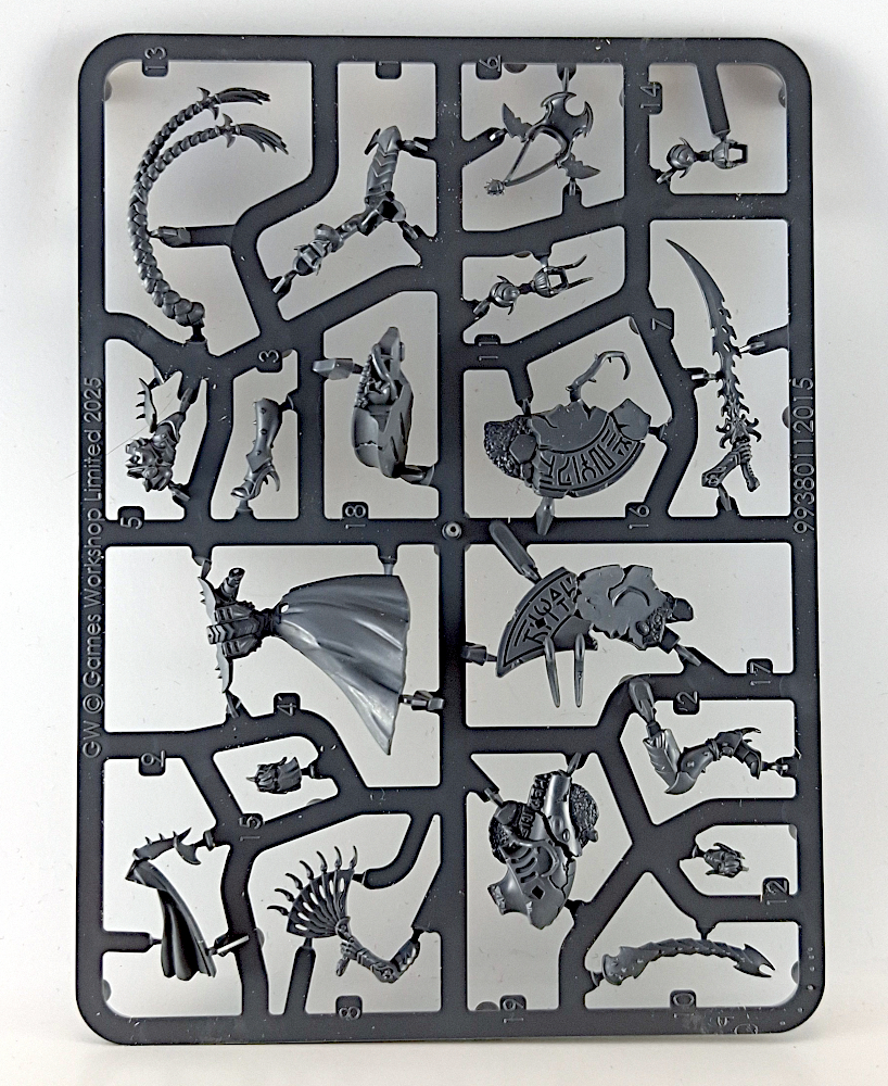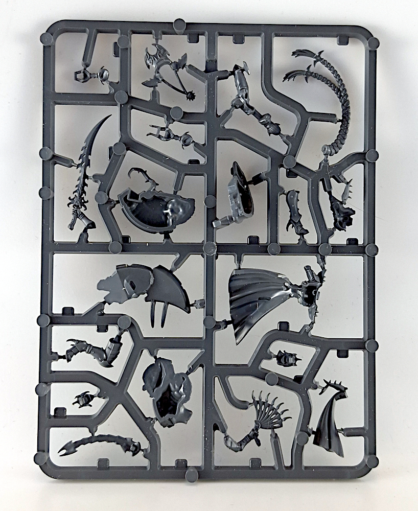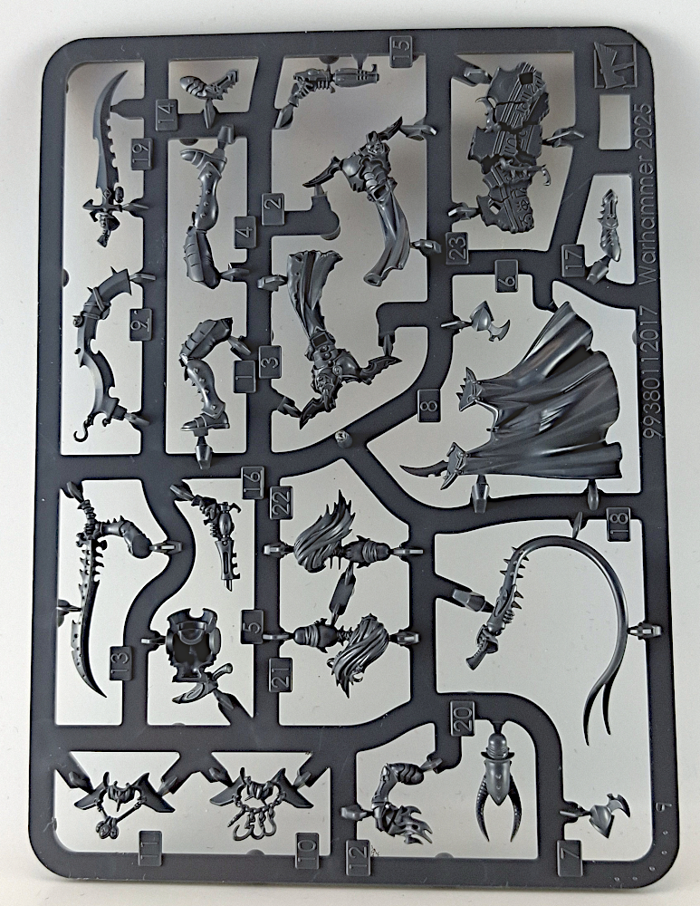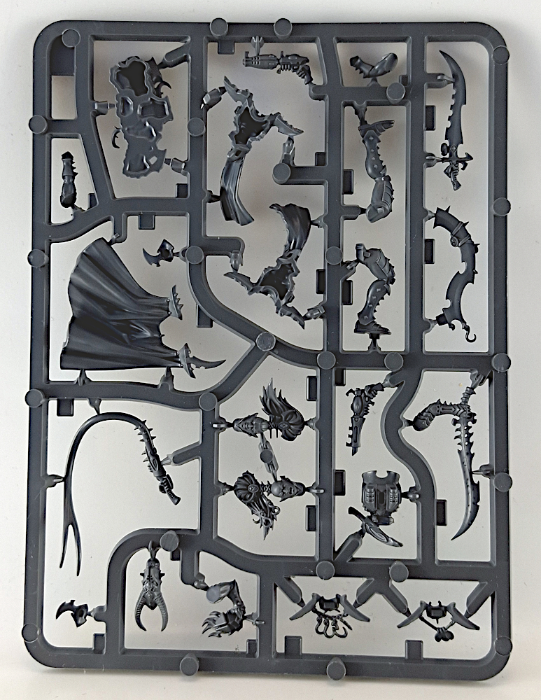Der Archon kommt im üblichen Charaktergussrahmen und wird auf einer 32mm Rundbase platziert. Dieser Gussrahmen ist allerdings vollgepackt mit Optionen. Dabei kann man auch entscheiden ob man lieber einen männlichen oder weiblichen Anführer in seiner Armee haben will.