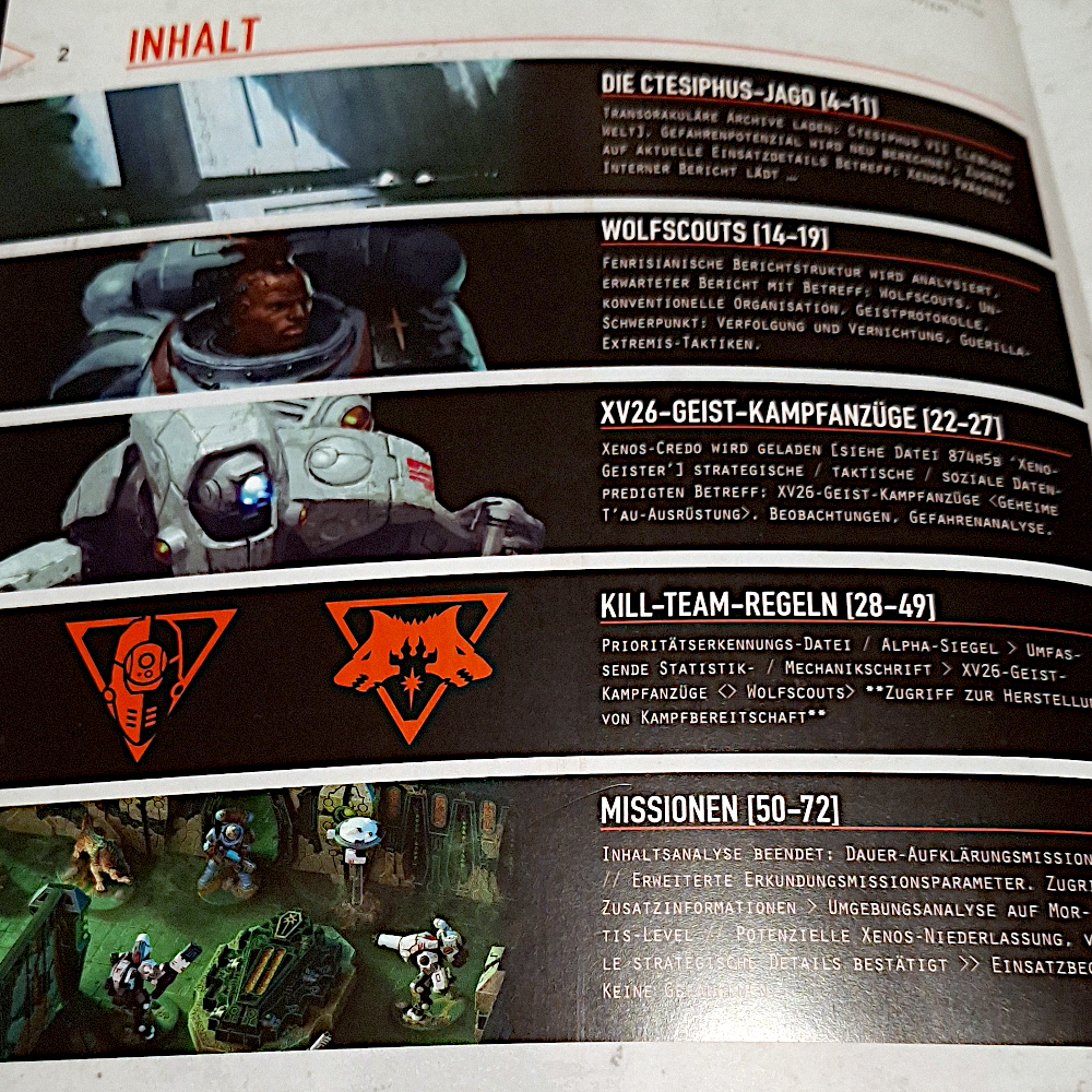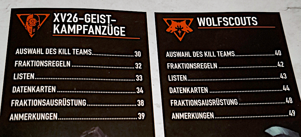 Oder, etwas grob zusammengefasst: 2 Kill Teams samt Karten, Regeln und Markern sowie eine Kampagne mit Zusatzmaterial um den Kampagnenfortschritt festzuhalten.