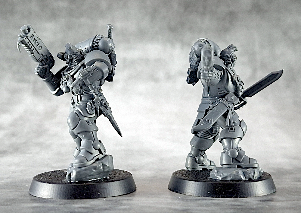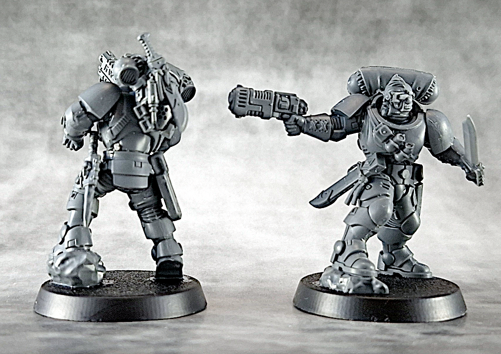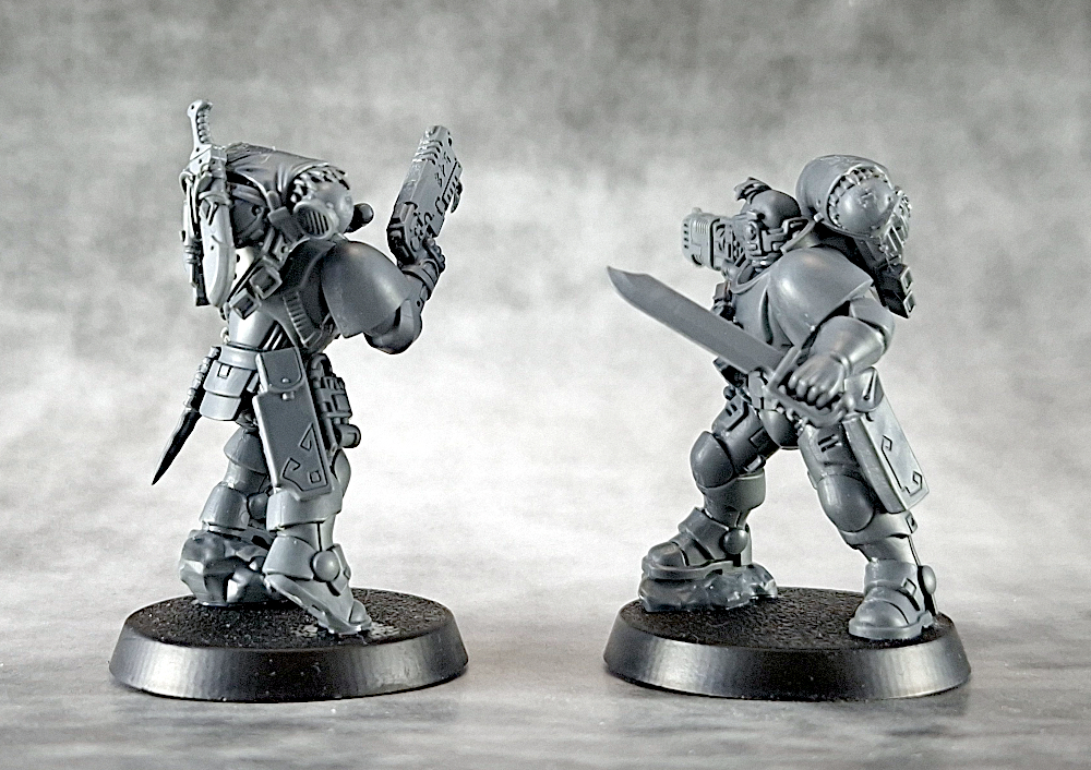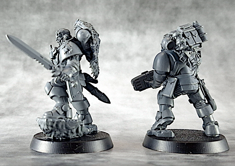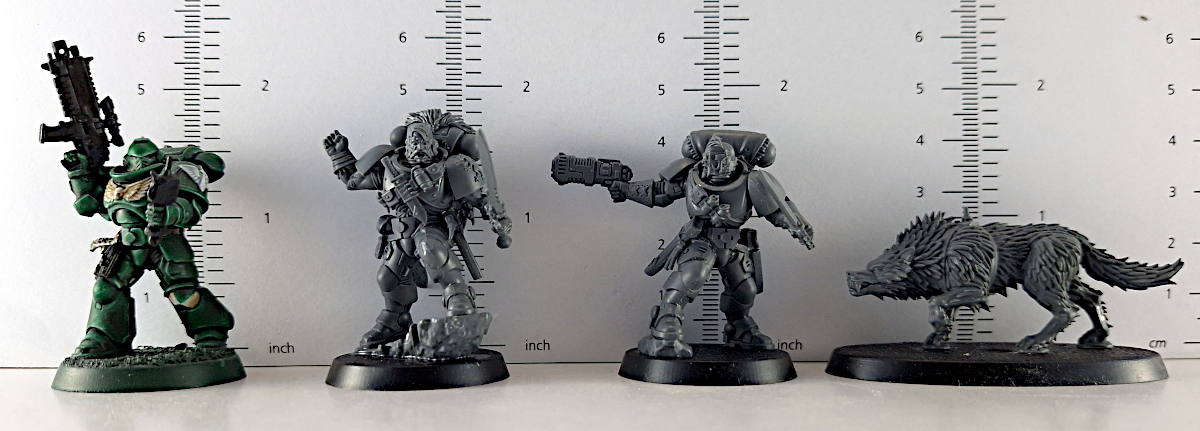 Wie so oft in letzter Zeit nutzt Games Workshop auch diese Kill Team Box um zwei neue Einheiten für Warhammer 40.000 auf den Markt zu bringen. Die Space Wolves erhalten also ihren eigenen Scout-Bausatz und die T’au überarbeitete Geister. Leider hatte ich keinen XV25 zur Hand, aber über Google lassen sich recht einfach Vergleichsbilder finden (meine gewählte Suche war „xv25 vs xv26 t’au“). Die neuen Geister sind ein klein wenig größer als ihre Kollegen, aber auch schlanker. Auch die Waffen wurden etwas geschrumpft. Dafür wirken die XV26 agiler als die etwas klobigeren XV25. Und sie wirken detaillierter. Bei den Scouts handelt es sich um komplett neue Modelle, welche Elemente der frühen Metallmodelle übernehmen. So tragen die meisten Lederhandschuhe über ihrer Phobos-Rüstung, bewaffnet sind sie neben Boltpistolen und Kampfmessern auch mit Plasmapistolen und Äxten. Der Bausatz enthält keine Helmoptionen, dafür ist die Menge an Spezialteilen teilweise sehr hoch. Der Runenpriester-Skalde teilt sich mit seiner Option lediglich Beine und Rücken und die sehen noch dazu sehr generisch aus. Ich werde mal versuchen ob ich mit ein klein wenig Umbauarbeit an einem Reiver nicht doch noch einen Runenpriester-Skalden zusammen bekomme. Passend zu den anderen neuen Space Wolves Bausätzen enthält auch dieser Bausatz nur für eines der Modelle gestaltete Schulterpanzer und auch hier stehen dieselben beiden Großkompanien zur Auswahl: Ragnars Blackmanes und Logan Grimnars Champions von Fenris.