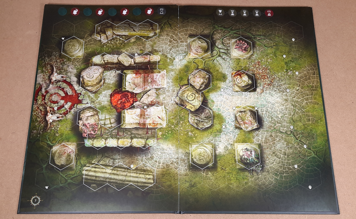 In diesem Spiel gibt es keine verschiedenen Spielbretter in klassischer Form, sondern die Spielfelder befinden sich in einem großen Hardcoverbuch.