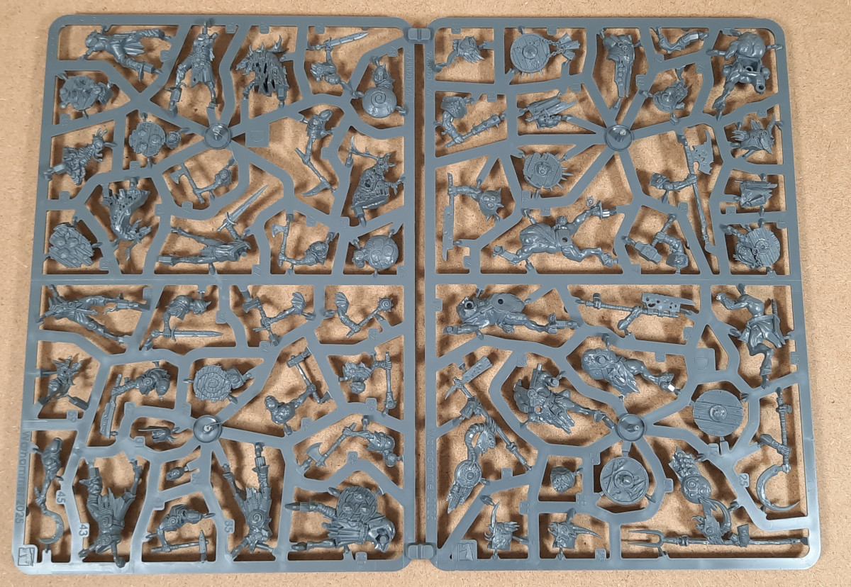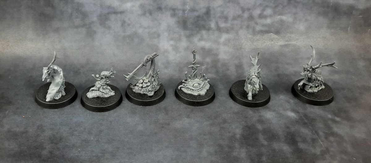 – 33x Feindminiaturen: 2x Geschwürgeborene, 3x Fäulnistempler, 6x Moor-Kelpies, 8x Pestigors und 14x Pocken-Jämmerlinge