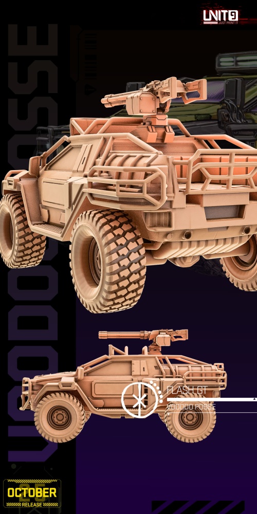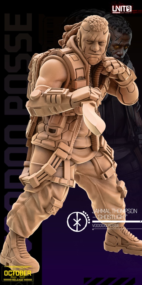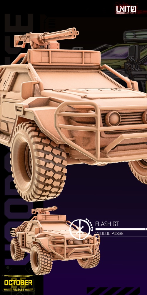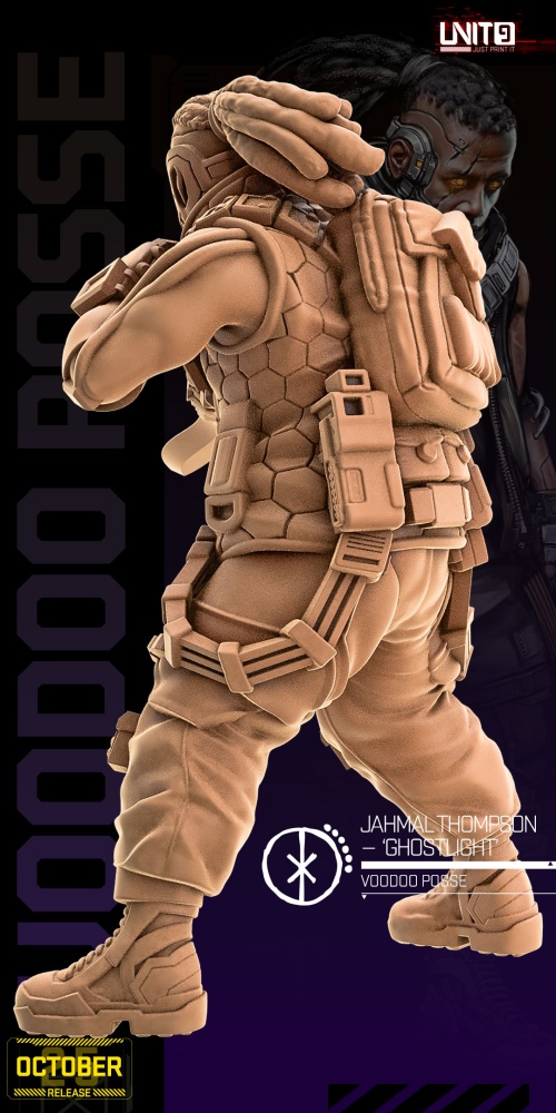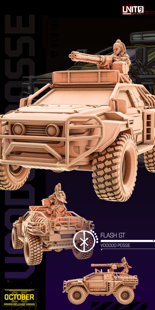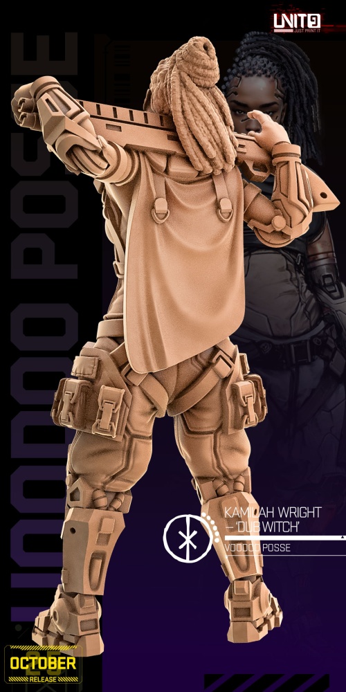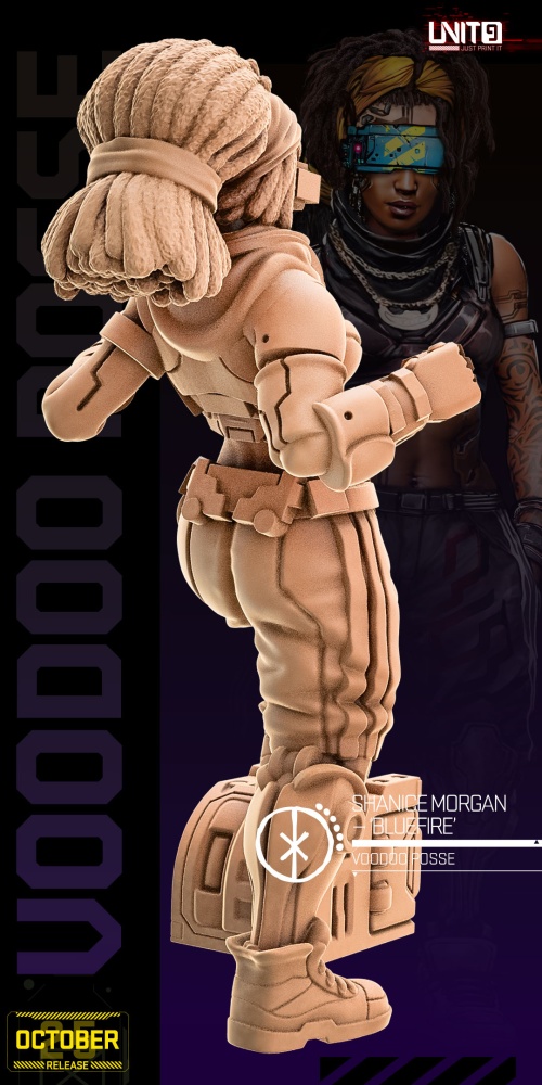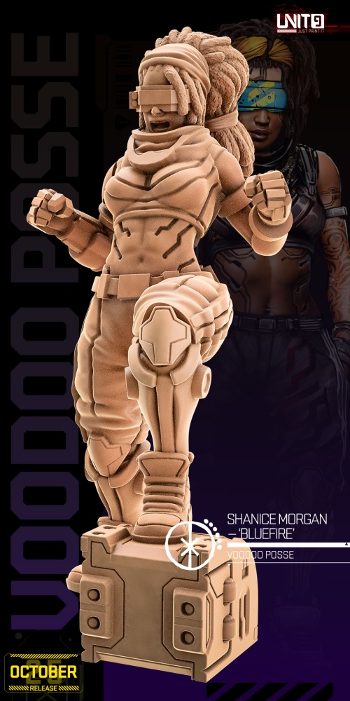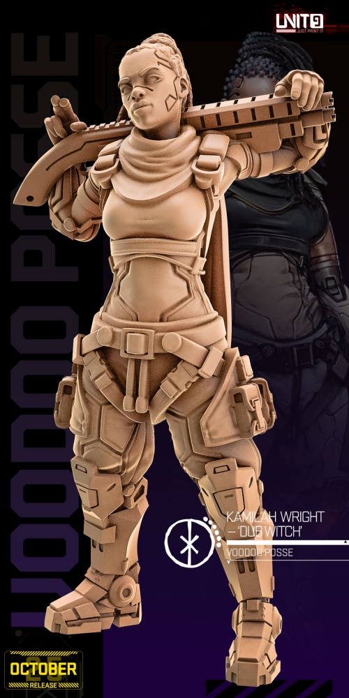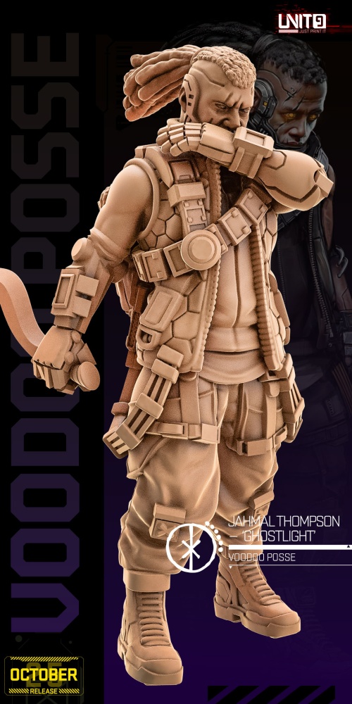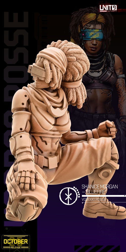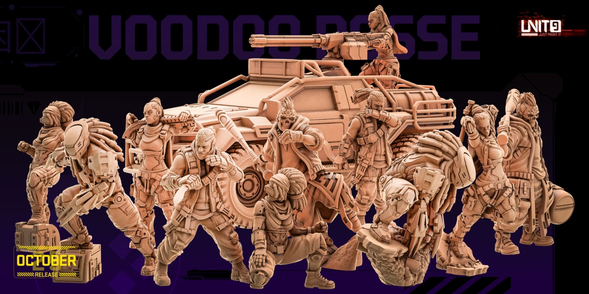 This October drop hits the grid with the Voodoo Posse: Shanice “Bluefire” Morgan, Jahmal “Ghostlight” Thompson, and Kamilah “Dub Witch” Wright (multiple poses), plus heavy hitter Skull Hunter and the gun-topped Flash GT tactical truck. Round out your table with our new neon-asphalt gaming mats (72″×48″, 48″×48″, 36″×36″, 30″×44″, 24″×24″). Not mentioned about Welcome Packs, game rules and other exclusive stuff. All models arrive as cyberpunk STLs ready to print and slam into your Human Interface: Proxy War skirmishes.