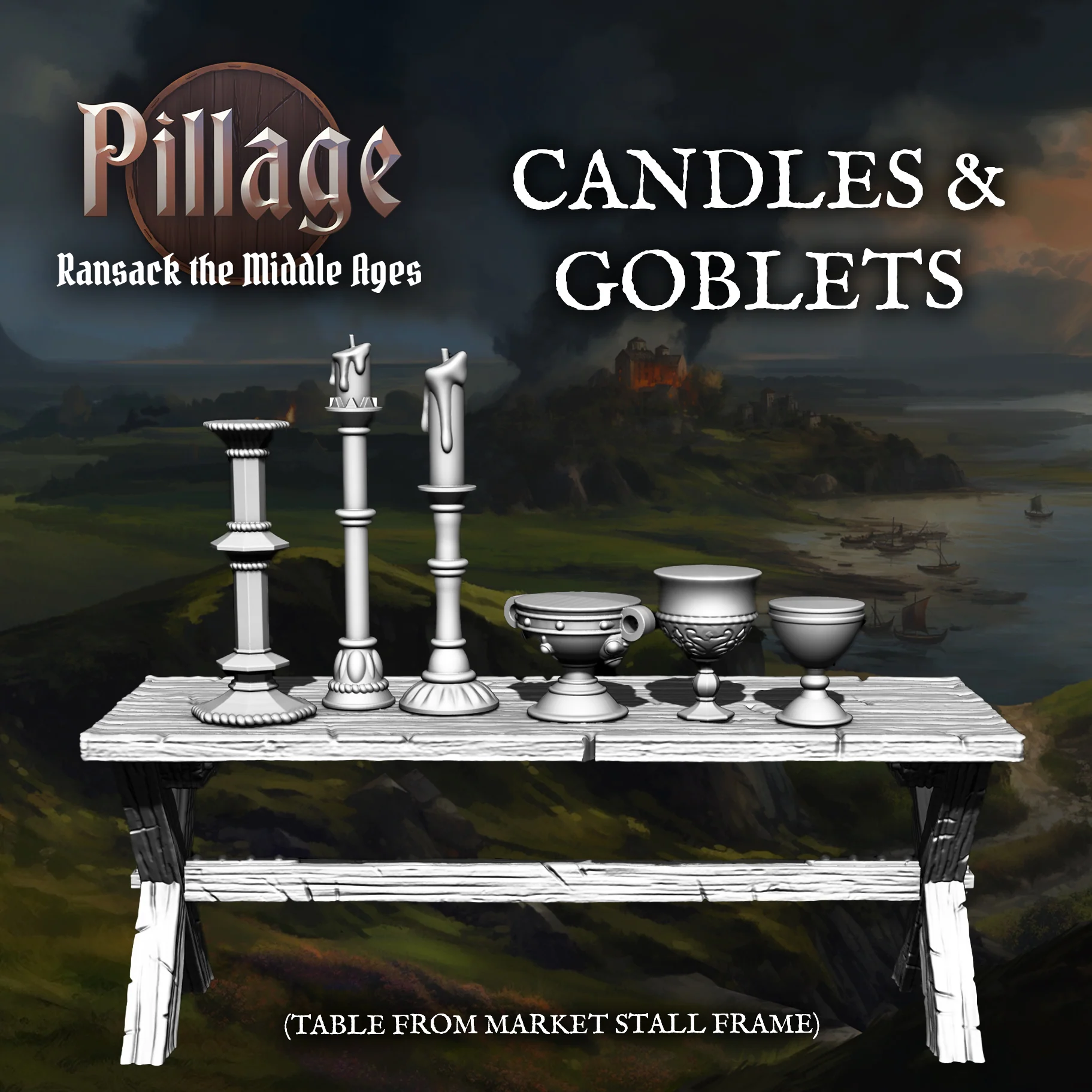 Enrich your Dark Age and Medieval games (including Pillage of course) with this beautiful collection of treasure pieces and lootable objects. This set includes an assortment of chests, caskets, religious items and decorative artefacts ideal for scenario objectives, tabletop dressing, or narrative play.