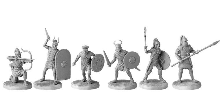 6 unpainted figures of Mycenaean warriors. Ideal for wargames and collectors.