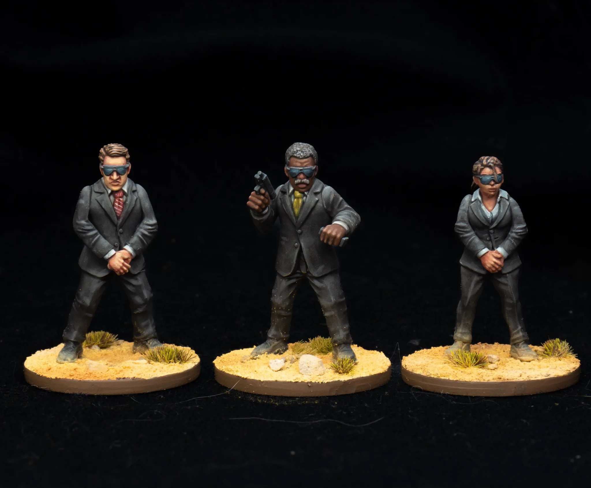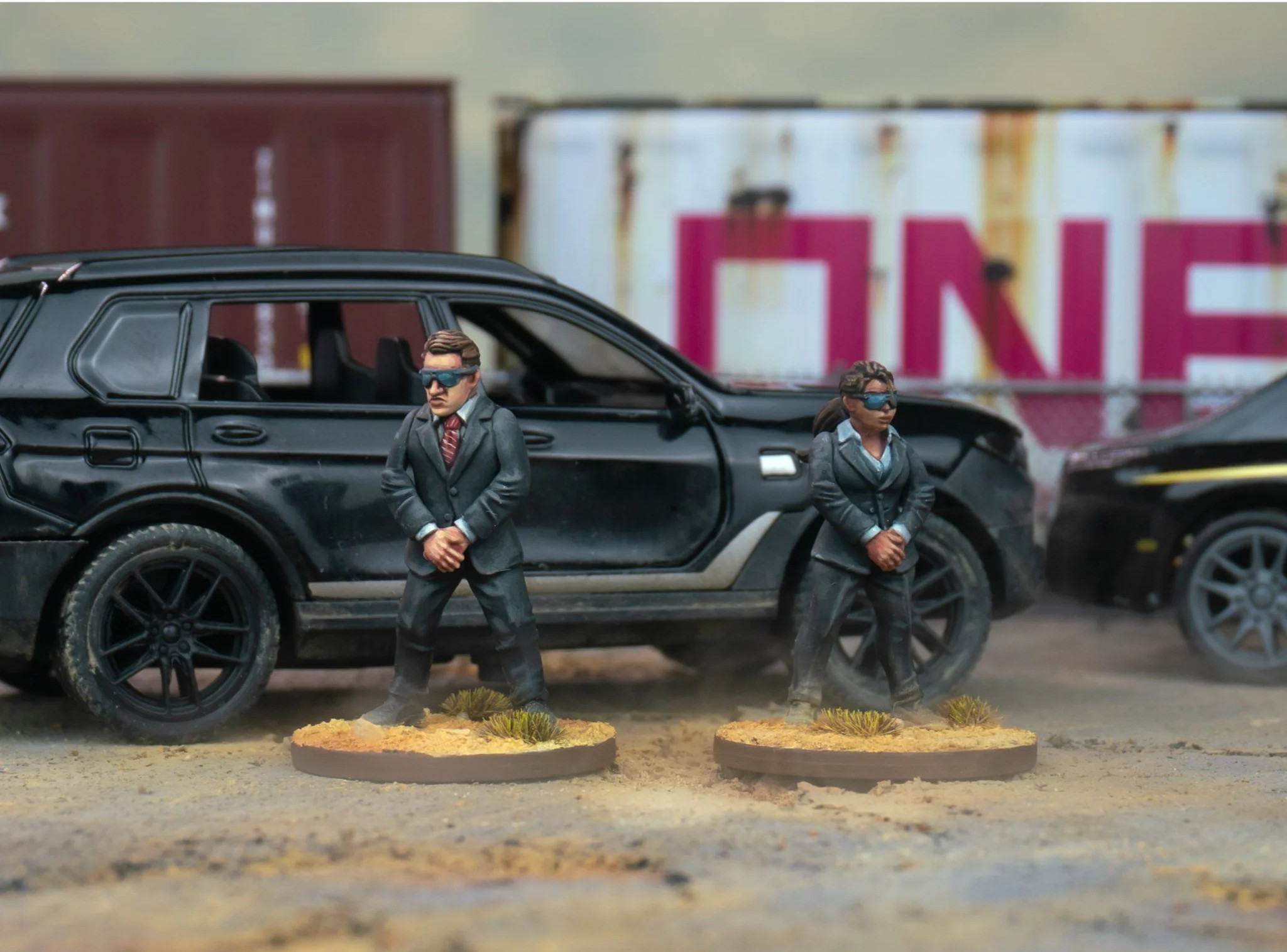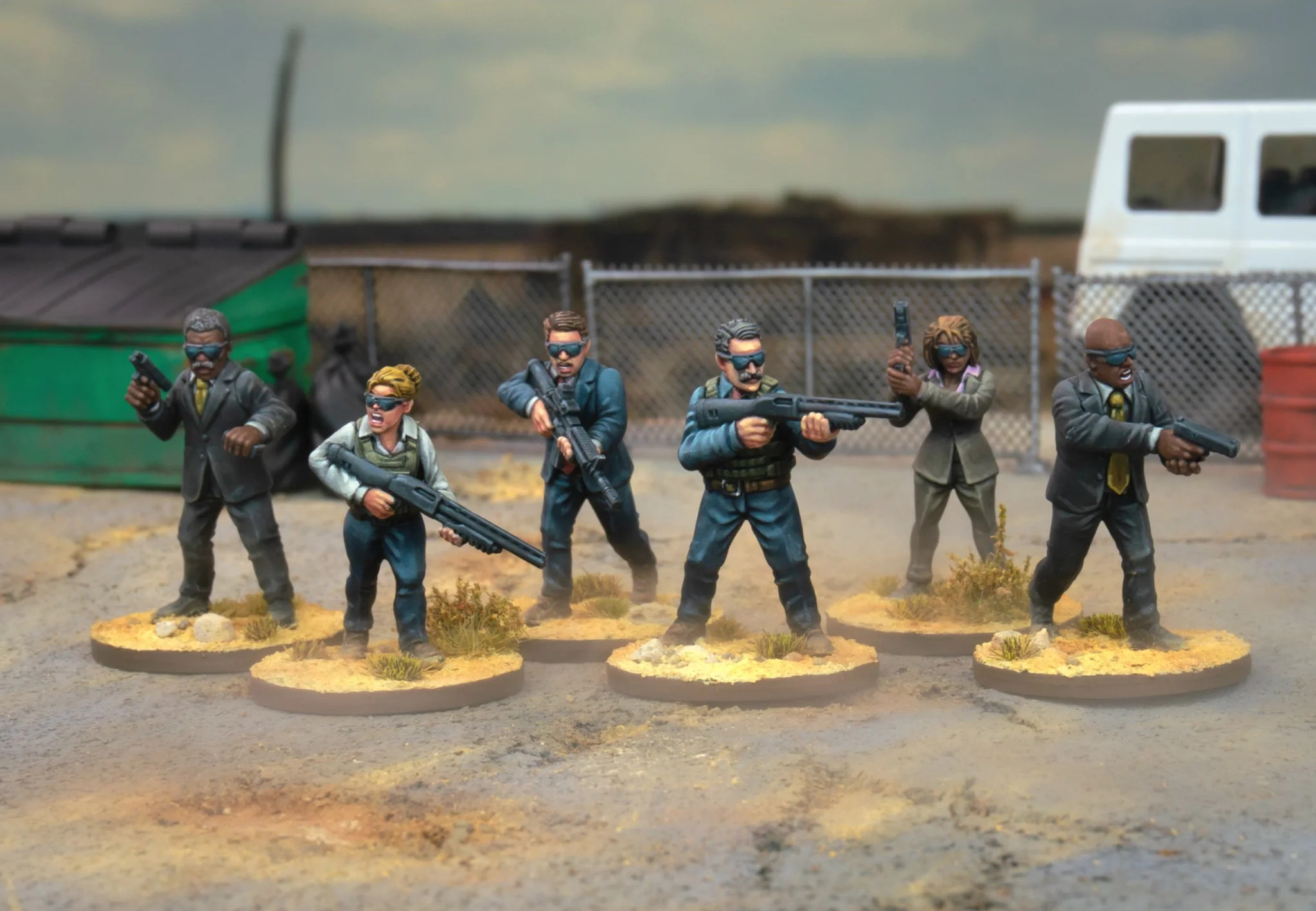 This set will allow you build up to 12 men in suits, 4 women in suits, and 4 each of male and female bodies in tactical vests. Weapons include shotguns, pistols, MP-5s, P-90s, HKs, and M-class rifles. There are also arms for checking ear-pieces and holding a briefcase. Most parts will be compatible with the other sets in this range for even more weapon and head variety (suits and cowboy hats anyone?)