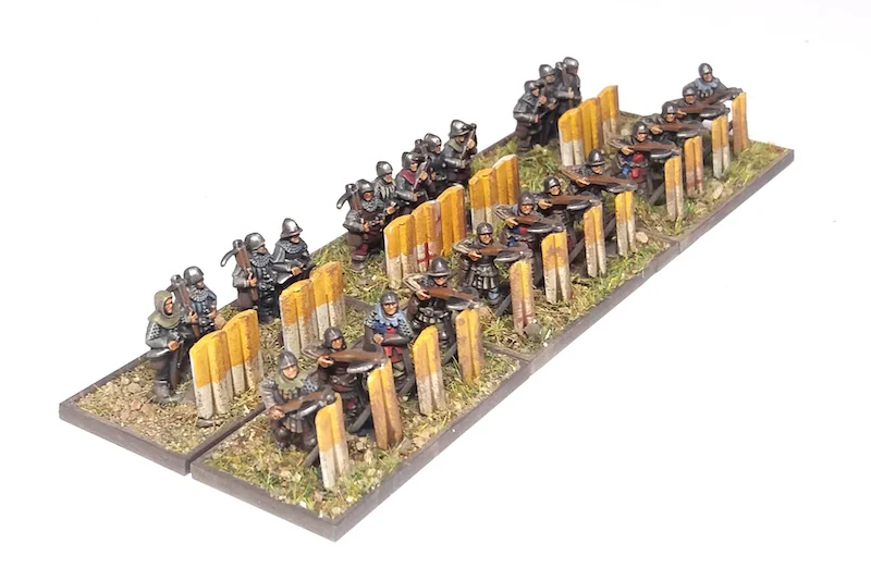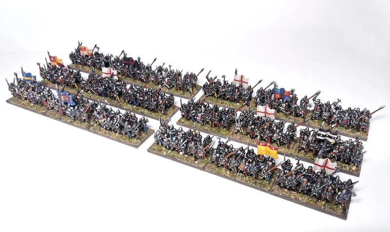 We’ve designed four unique frames that cover French mounted and foot knights, Genoese crossbowmen, English longbowmen (with bows and with melee weapons), and English foot knights/men-at-arms.