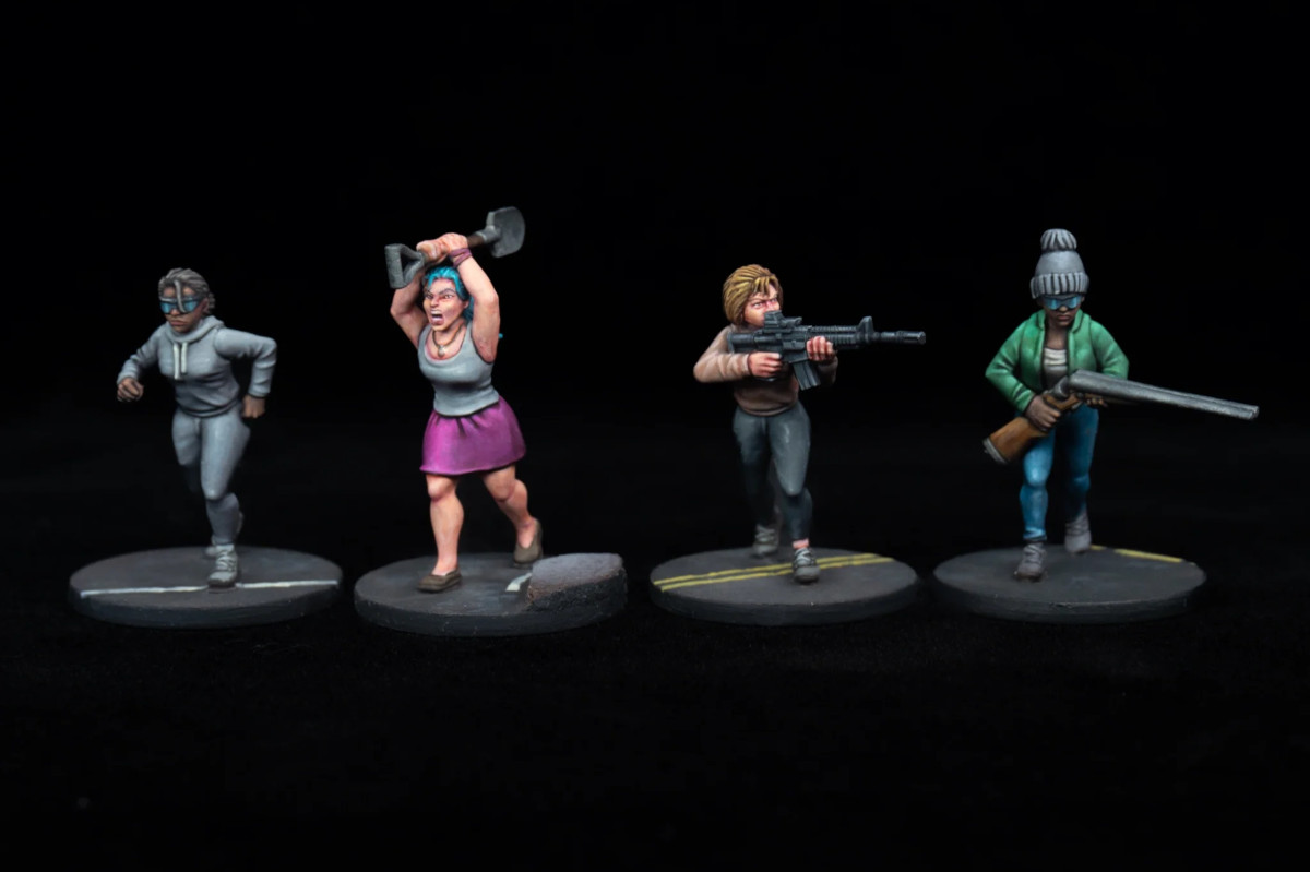 This hard plastic box set includes enough parts to build 24 28mm figures. There are six unique bodies, enough arms to make all of them fleeing if you want, and a huge mix of weapon arms. Weapon arms include: shovels, baseball bats, machetes, double barreled shotguns, semi-auto shotguns, pump shotguns, AR-15s, semi-automatic pistols and revolvers, Uzis, and hunting/sniper rifles. And to top it off there are 21 unique heads with a total of 84 heads in the box!