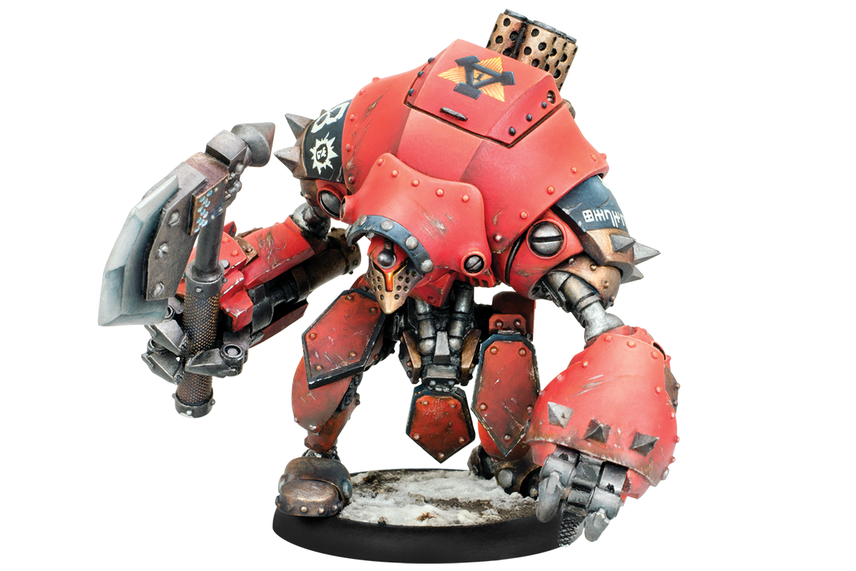 The Khador Juggernaut with a fist the size of your paint cup or the Carnivean mid-roar, halfway through swallowing a lesser warbeast.