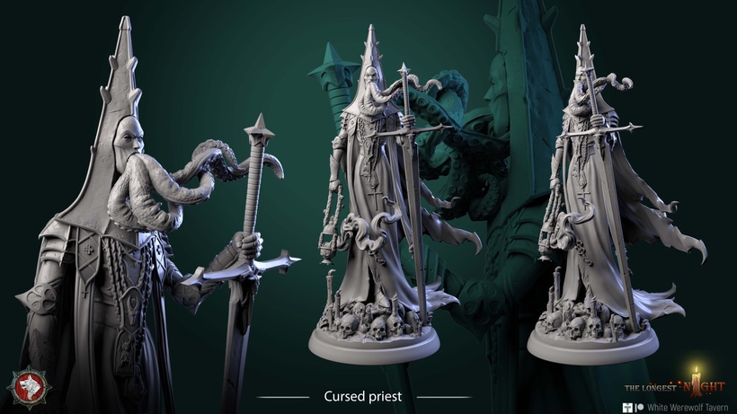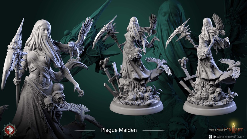 Sure enough, those old horrors have come wandering again. From the fog covered grave mounds stalks the Plague Maiden, trailing sickness like a shroud. Deep in the frozen wilds, the Wendigo prowls by firelight, lean and ravenous as ever. And in the dim glow of guttering candles, the Cursed Priest drifts between skull-lined altars, whispering rites no mortal tongue should utter.