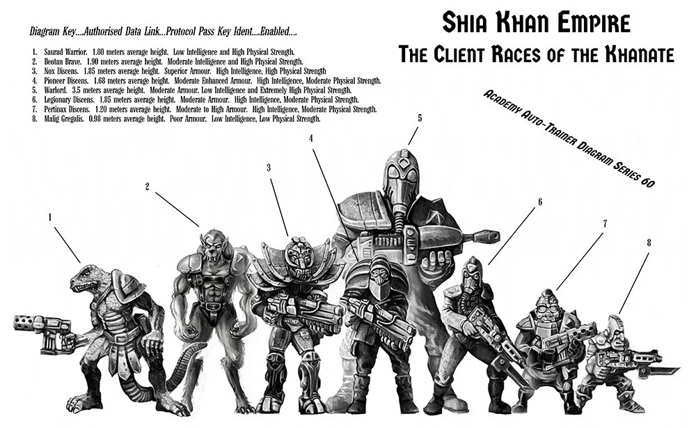 The Pertinax are very valuable to the Khanate compared to the expendable Malig Space Goblins and the primitive races as they take care of the technical roles such as weapon maintenance and vehicles such as Assault Orbs, Canno and Pugnus tanks.