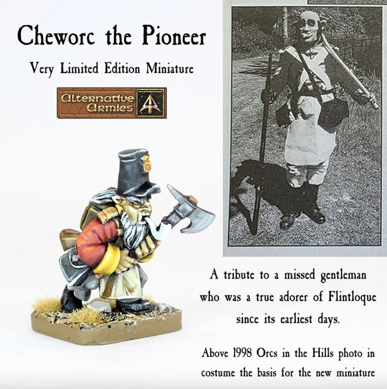 A new release for the World of Valon. A tribute. A new miniature on a very limited run to honour one of the first fans of Flintloque all the way back in the 1990’s. A man who even dressed as an Orc to make an appearance in a 1998 Orcs in the Hills magazine. We present Brian ‘Chewie’ Keeling as that very Albion Orc. May he rest well and we all miss him greatly.