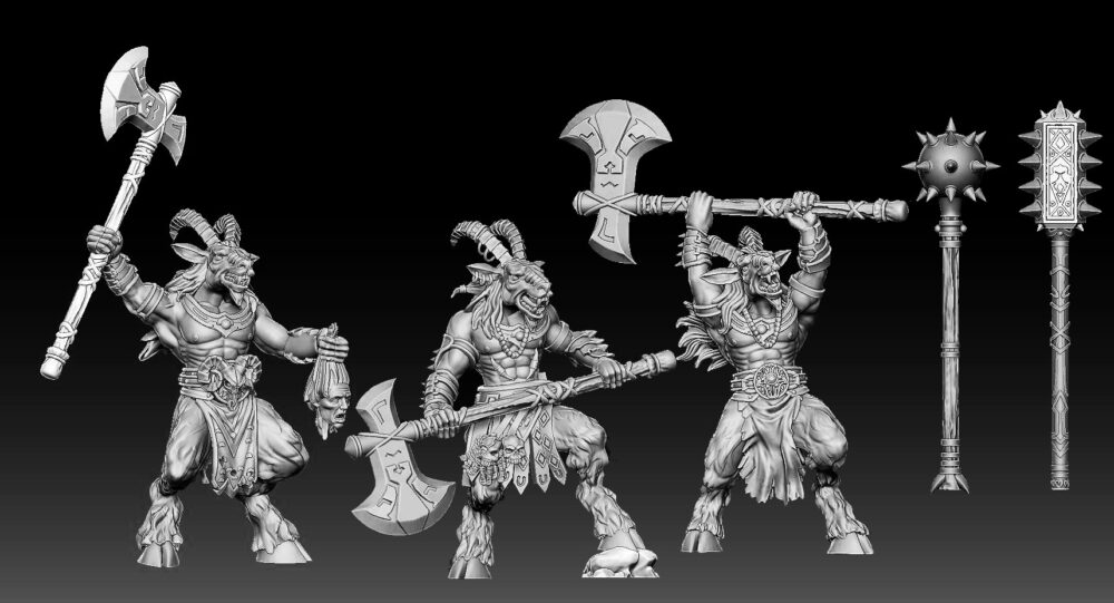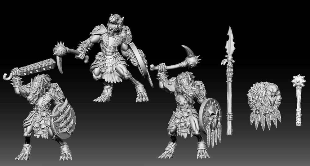 We’re on the final stretch for writing the Uncharted Realms RPG rulebook, adding in the surface lands with solo rules for running land exploration, side quests, cave exploration, chasm descent, and ruins/dungeon exploration. The map has many cave entrances, ruins and chasms, some of which lead to the underworld, which will have rules for exploring and mapping unknown lands. The rulebook will have everything needed for group RPG play, solo and co-op.We are getting ready for the kickstarter for the Uncharted Realms Core Rulebook, and we have some more STL miniatures that will come with it. These are some Chacal and Skorn Beastmen. They will come with different weapon options and three poses each.