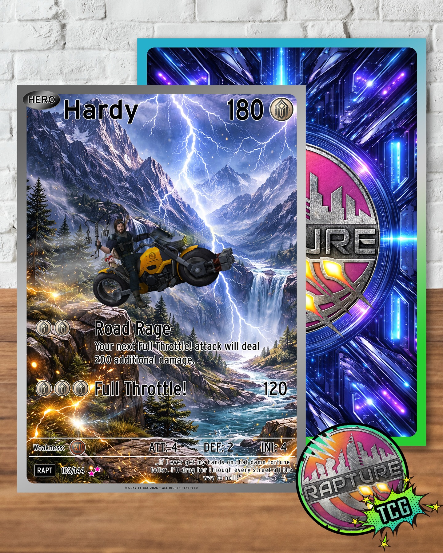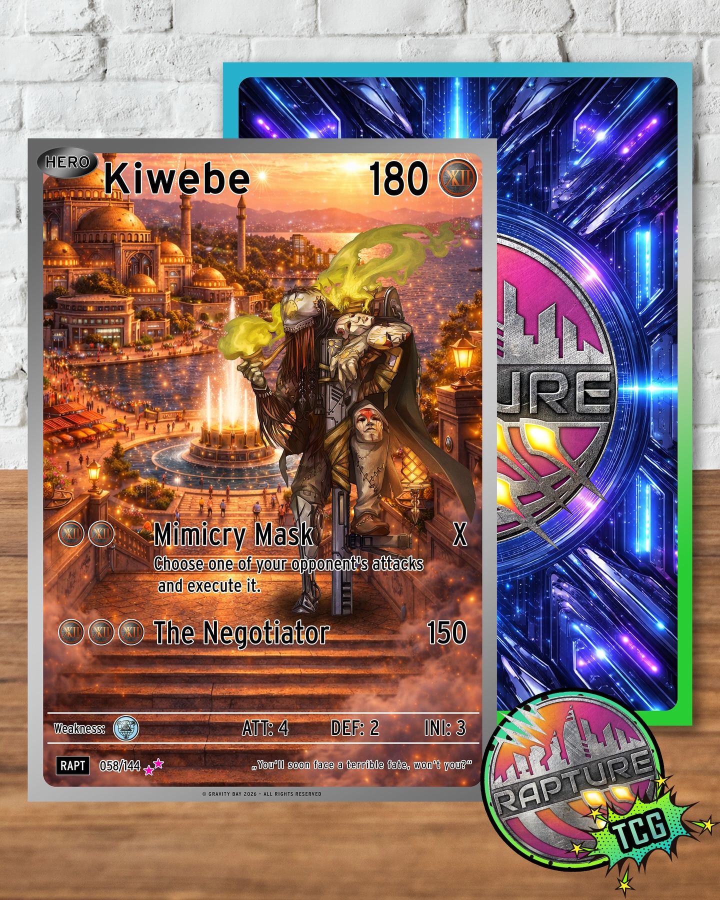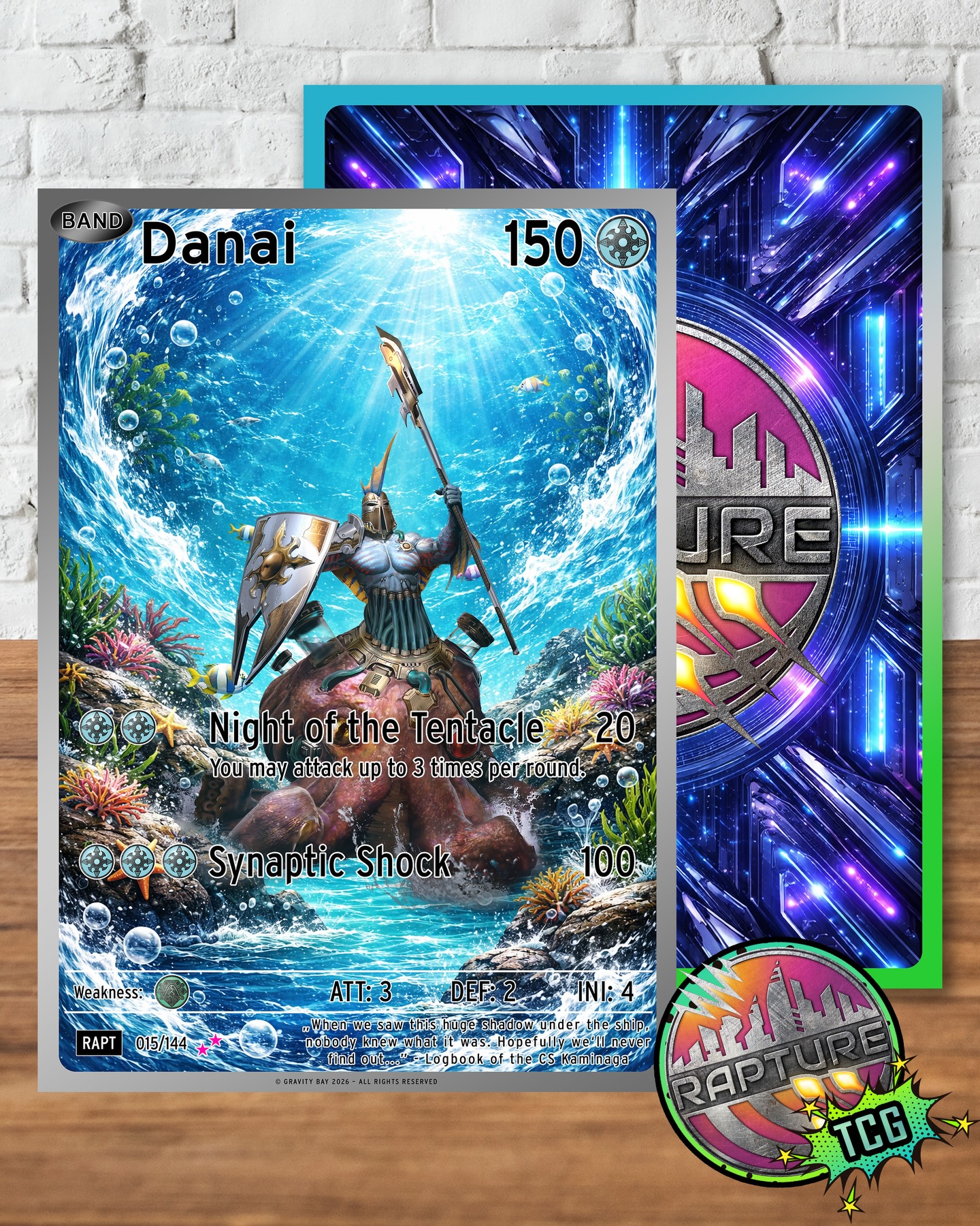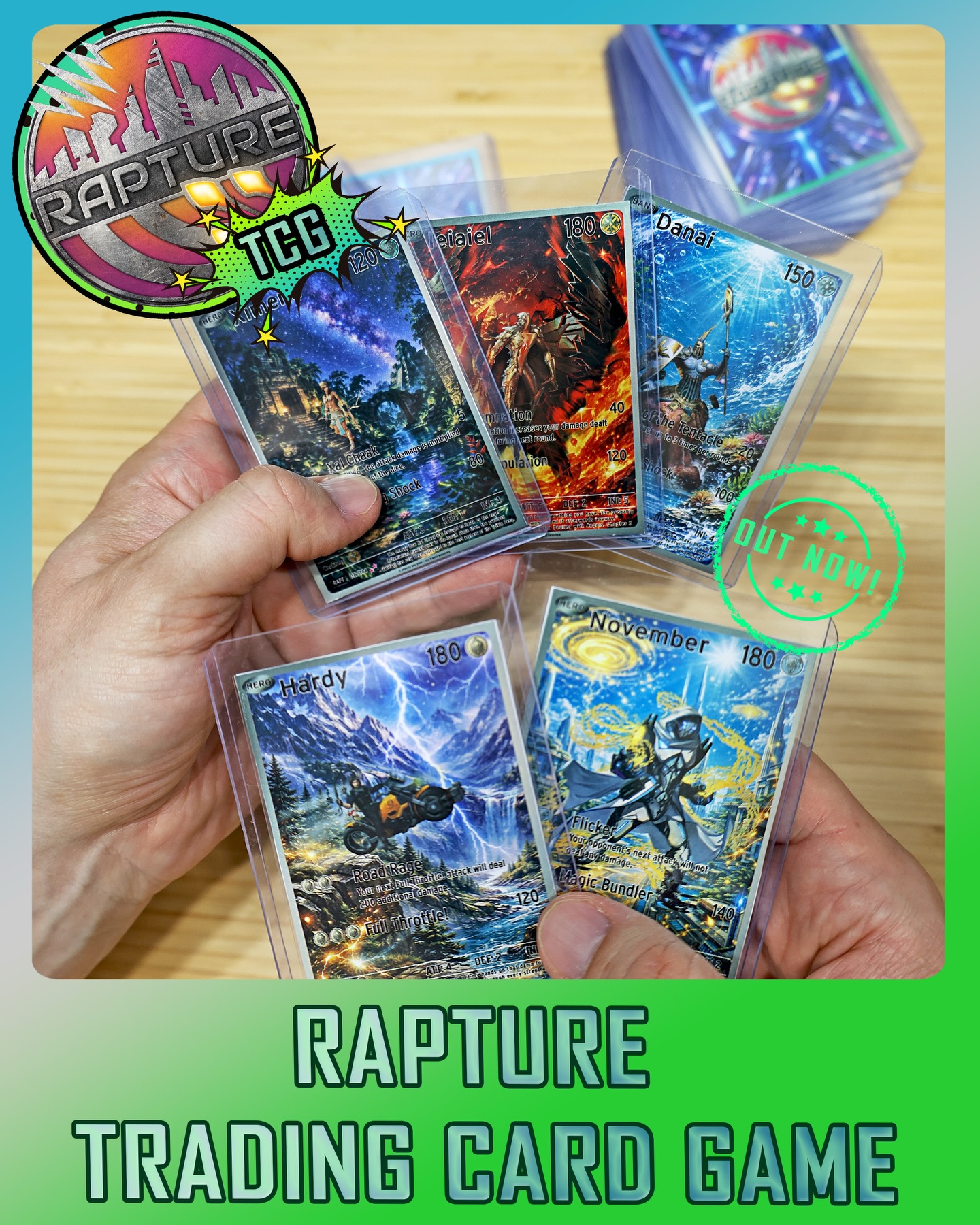 Tauche noch tiefer in das Rapture Universum ein und sammel sie alle!Unser Rapture TCG ist ein fesselndes und actiongeladenes Spiel für 2-64 Personen! Eine Runde kann in 10 Minuten entschieden sein oder auch 4 Tage andauern, denn eure Decks haben kein Kartenlimit! Ihr wollt euer Deck bis zur Decke stapeln? Macht das, wir verkaufen euch gern die Karten dafür!Genieße unsere fantastischen und beliebten Charakter Designs auf atemberaubenden Full Art Karten!Doch Achtung, es geht um alles! Als Einsatz einer Runde wird die komplette Kartensammlung gesetzt, bei einer Niederlage wird es es also etwas unangenehm!Aber das ist auch kein Problem: in unserem Shop könnt ihr natürlich jederzeit neue Karten nachkaufen!Die Rapture TCG Booster enthalten jeweils 6 Karten und kommen als unfassbares Schnäppchen: nur 499,95€ UVP! Eine bessere Geld-Anlage hat es nie gegeben!Die beliebten Starter-Decks sind aber leider jetzt schon von allen Vorbestellern vergriffen!Rapture: Trading Card Game! Verpasst es nicht!