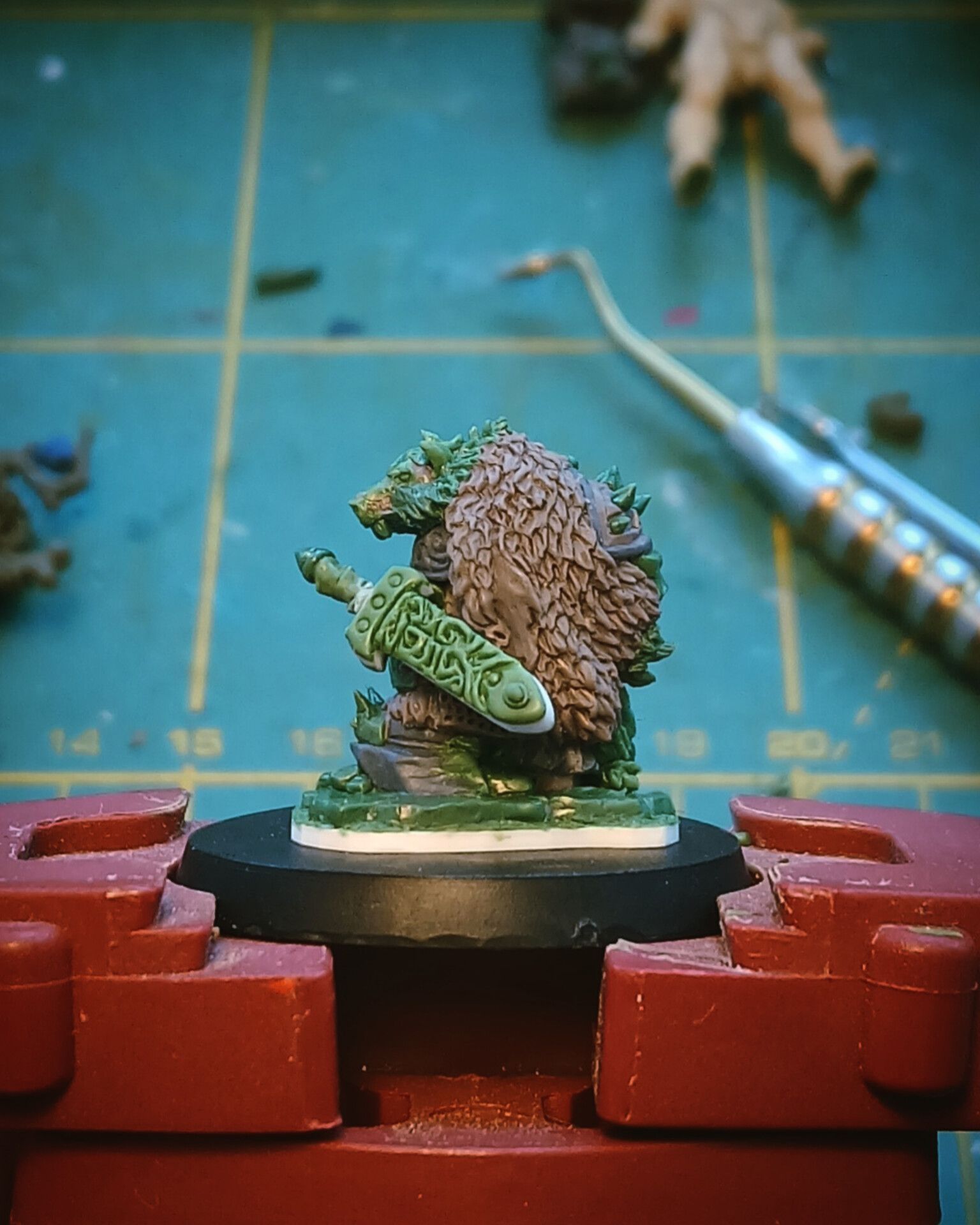 We’re currently working on a new model. Today we’re showing it to you from the back, and we’re curious if you can guess which army this miniature will belong to – or maybe even who it is!
