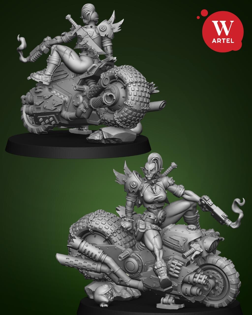 Mit einem anderen Kopf ist die Bikerin bestimmt auch toll für eine Escher-Gang. Den großen Ork finde ich langweilig.
