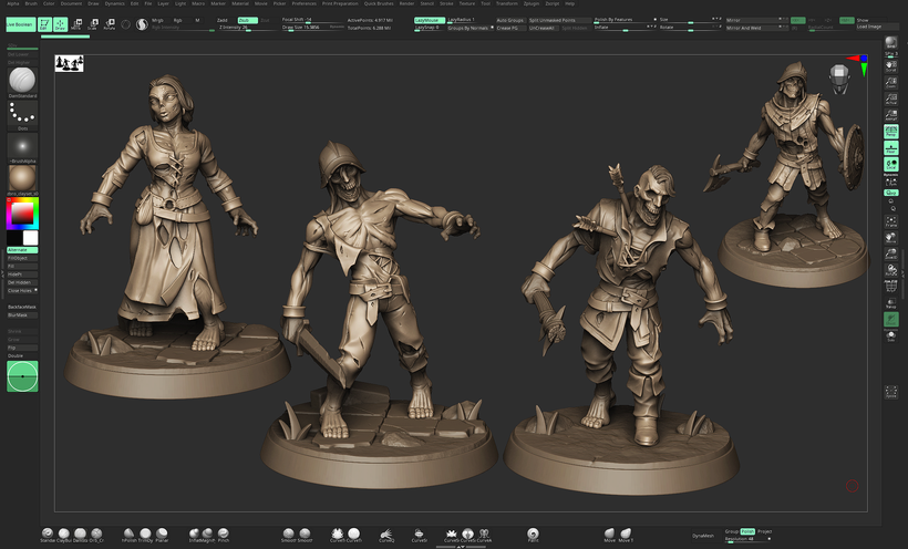 You’ve been asking for this for years, and I’m happy to finally show you the set of Zombies I’ve been sculpting this month. Sorry for the delay, it has been very complex working on these creatures, which are composed of various layers of surfaces, from bones to muscles and organs, to skin and clothes.
