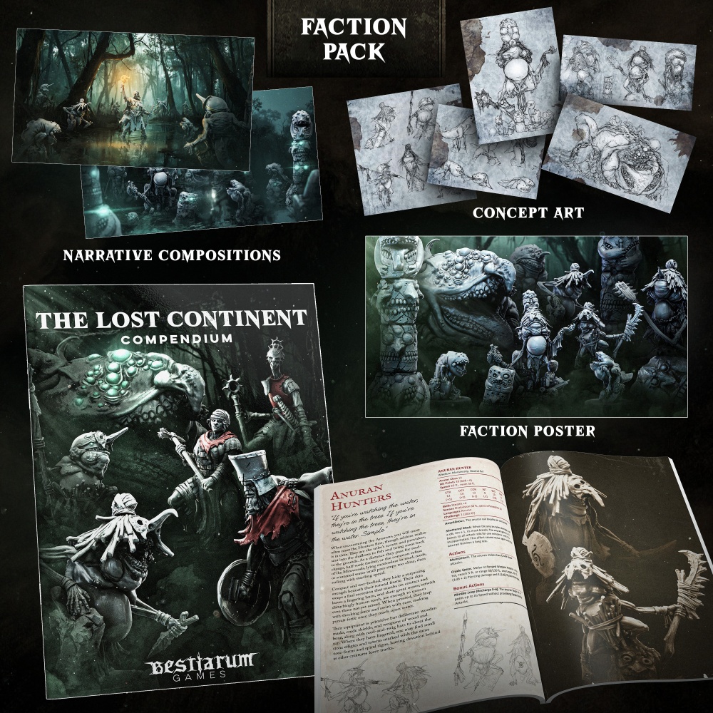 This release expands the Lost Continent with its first threats in the form of the warped inhabitants of the Mirewoods, from the prowling Anuran Hunters and hulking Warriors to the ritual-leading Shaman and the half-formed Tadpoles spawned in the shallows.