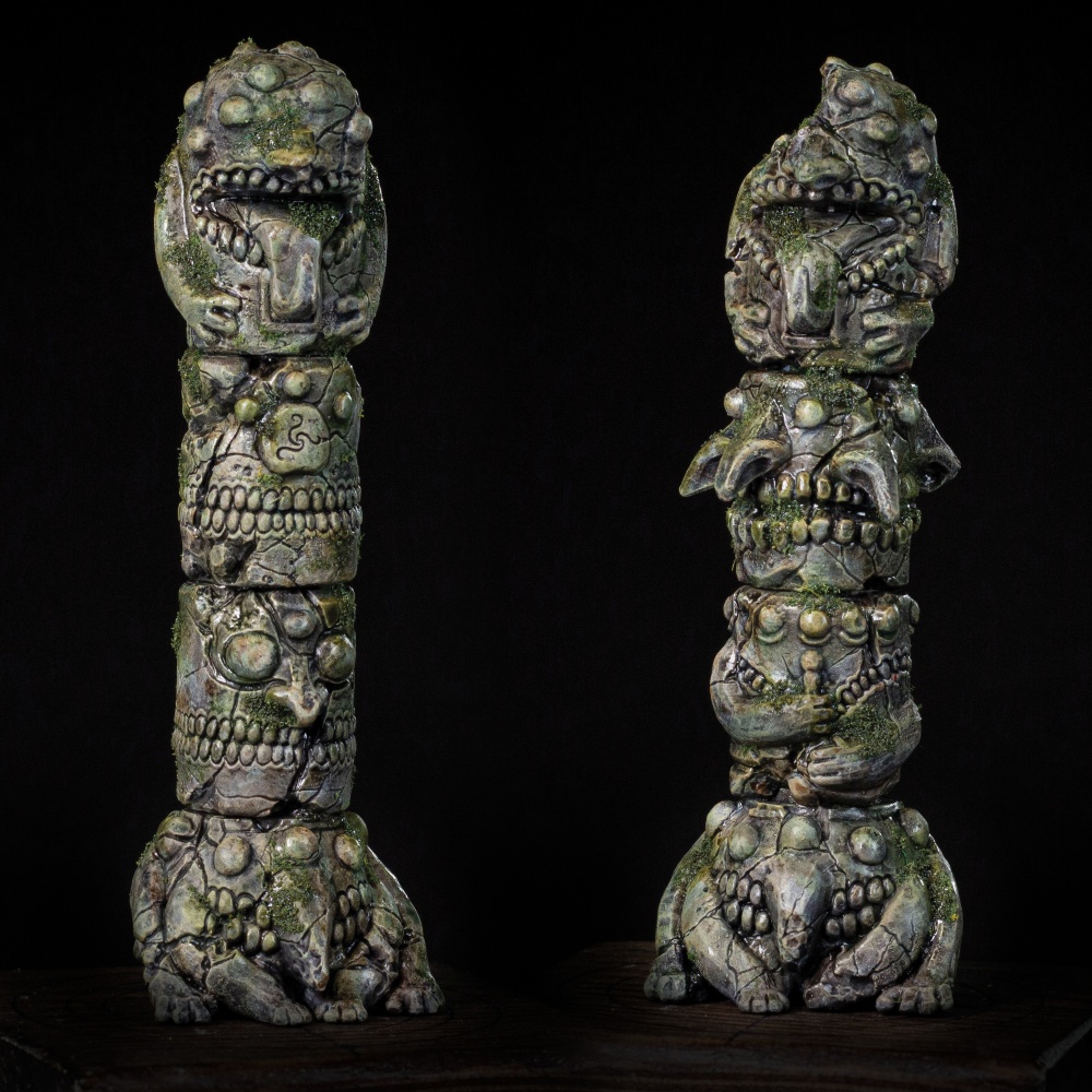 The Anuran Totems stand at the centre of the brood’s sacred ground, from the larger modular totems that form the heart of their ritual spaces to the smaller scattered effigies that mark the Matron’s reach. More than decoration, they reflect the Anurans’ worship of Tepozotli and give their territory a clear visual identity.