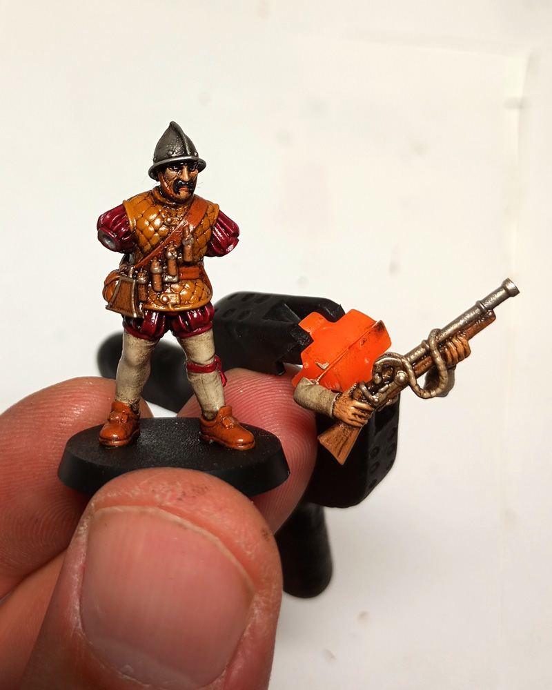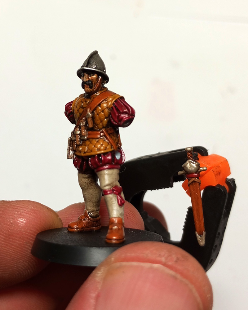 I have 10 mustachioed and bearded guys with handguns and absolutely no wish to mакe a full-fledged painting. So, now i’m trying to make a tabletop quality using blackening.