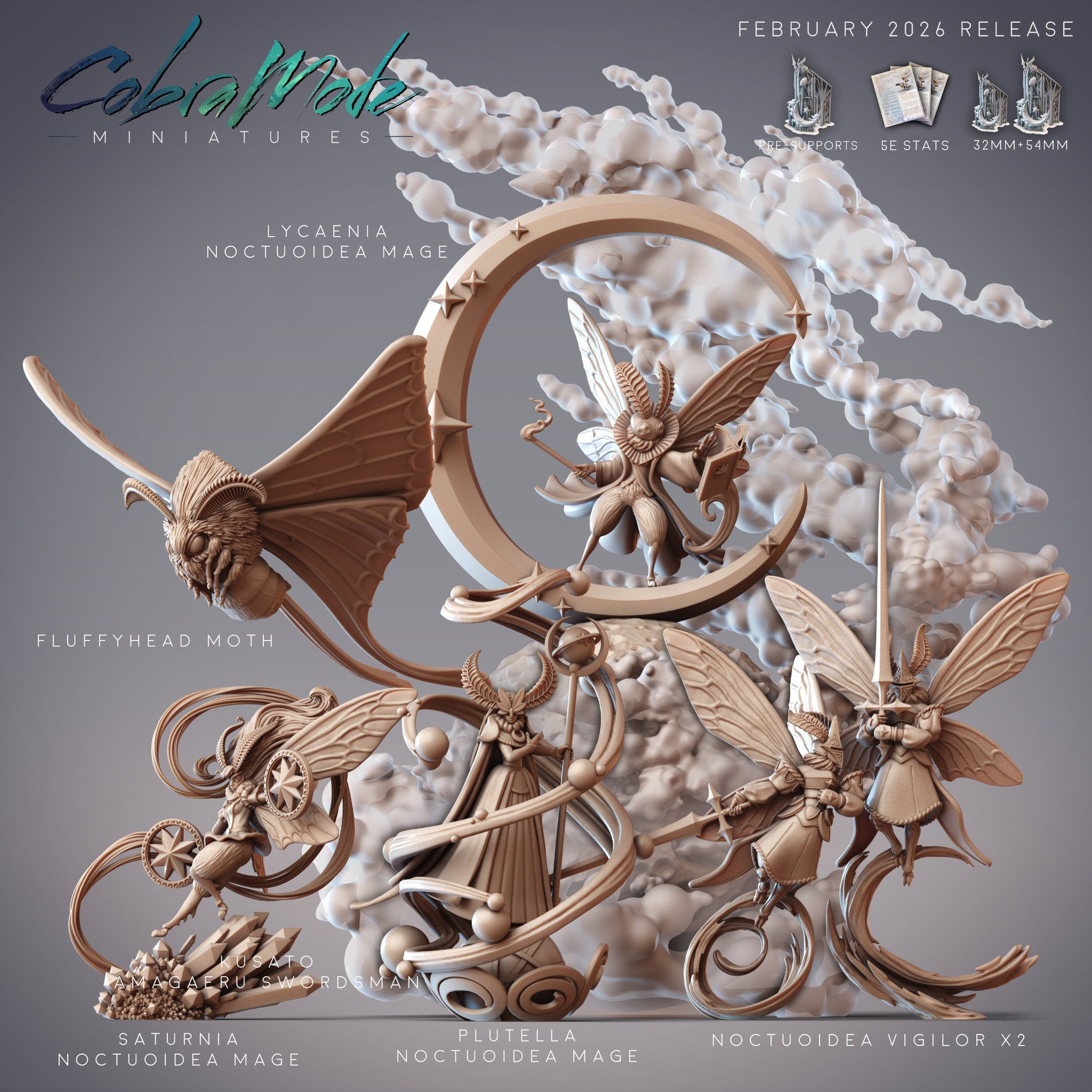 February’s Collection is in the Twilight Forest with the Noctuoidea Moth Folk, Mages of the Celestial Scriptorium!