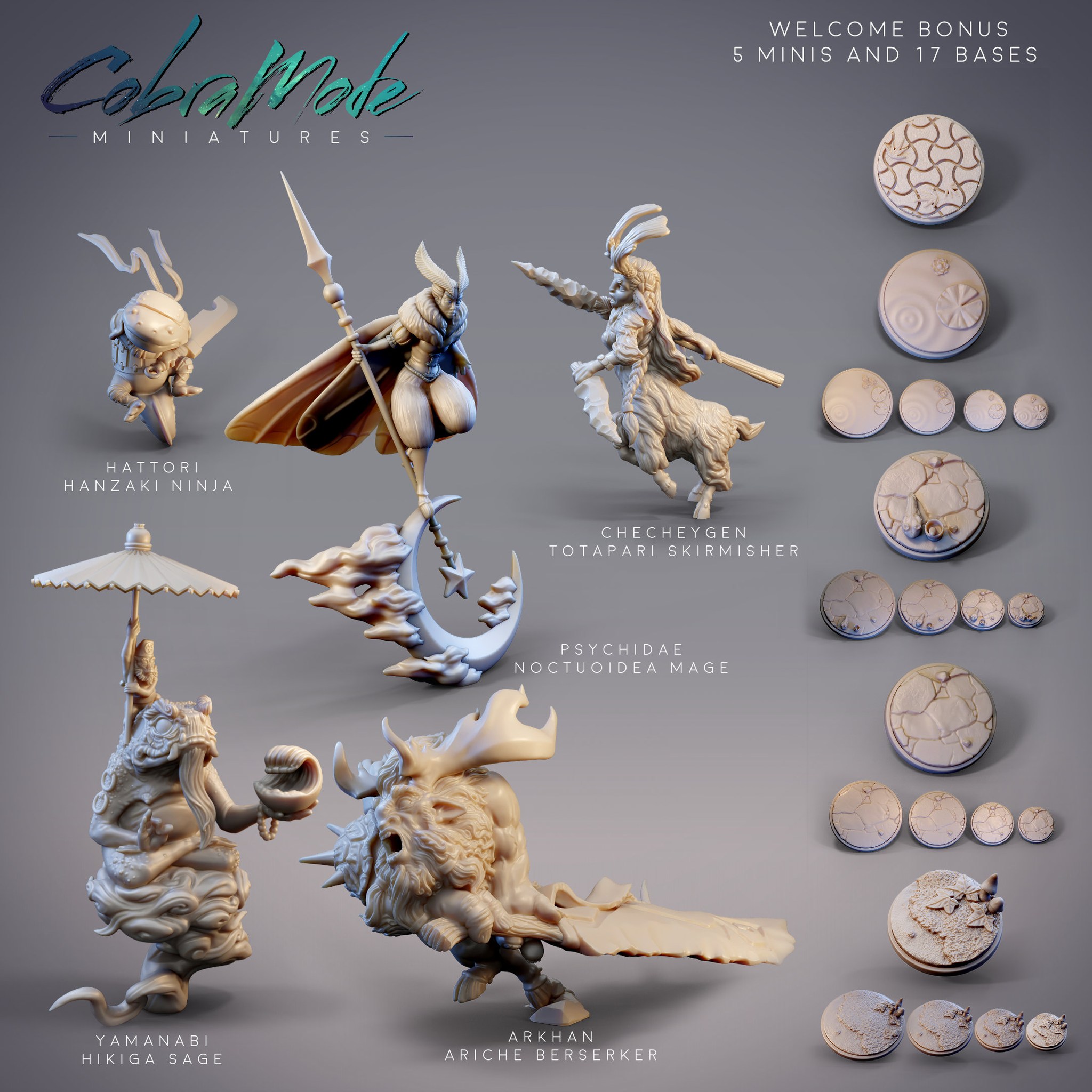 Sculpted with bases and terrain by Calrais, concept art by Paul Ferret.The throwback pack includes Hikimoto, Hikiga Bruiser, the Boondaburra Dive Corps trio, and the Jungle Bases & Terrain set.