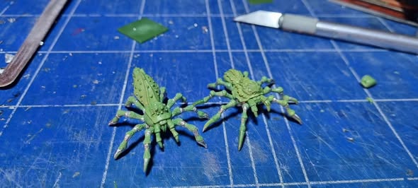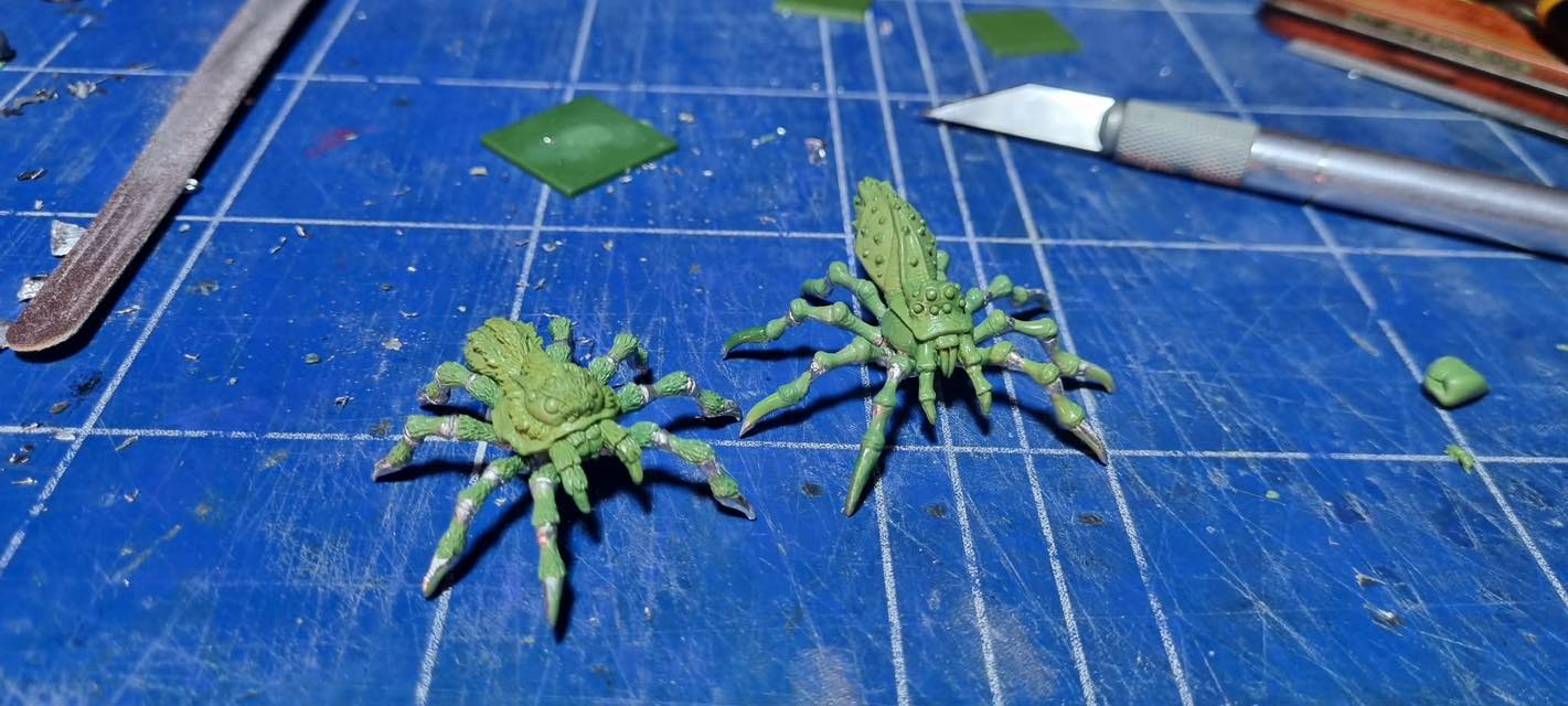 WORKBENCH PREVIEWS. Iain Colwell has finished these two wonderful giant spiders for the upcoming Servants of the Spider Queen Kickstarter! Bodies and legs are interchangeable.