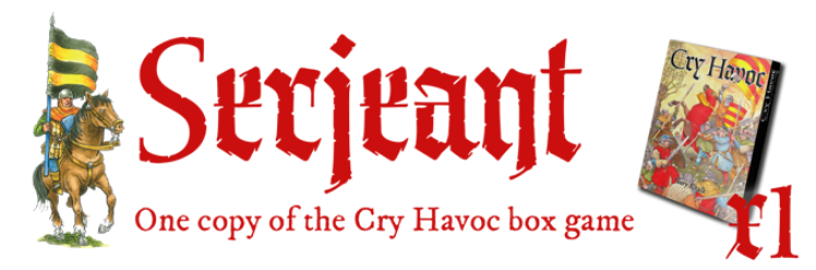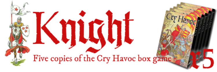 5x copies of the Cry Havoc! Game box. A knightly level for any brick-and-mortar game store.*(see FAQ Retailers& Distribution).