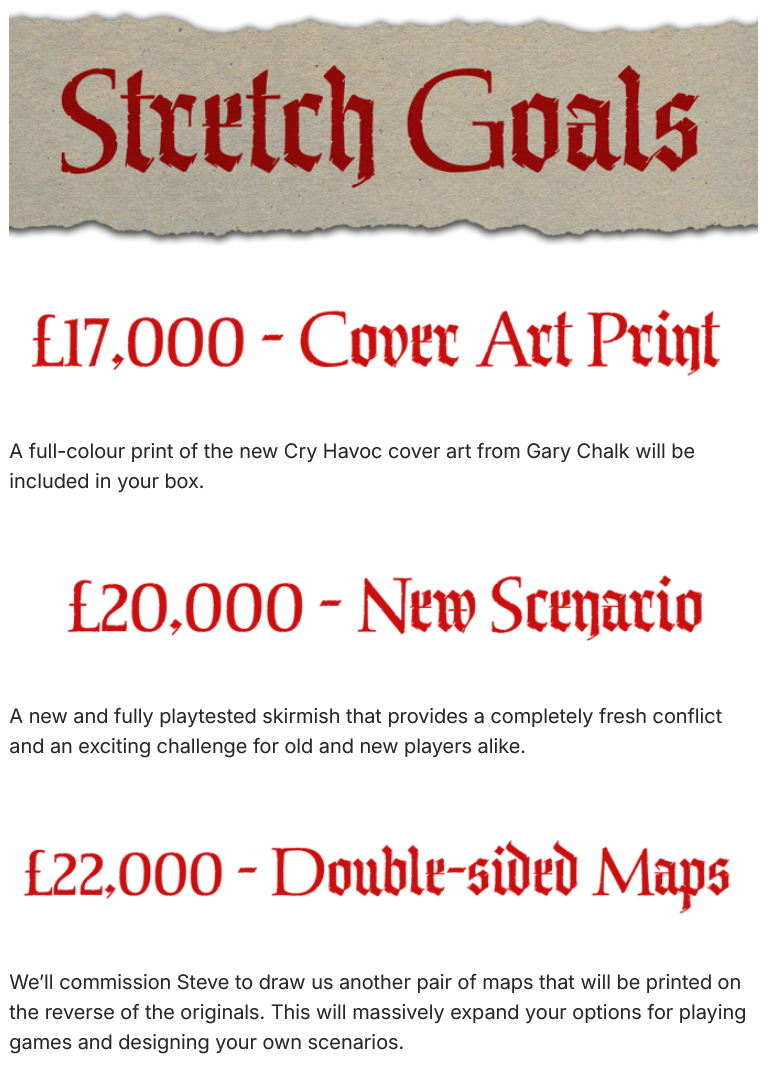 As Cry Havoc will be printed in the UK (five-minutes‘ walk from Footsore HQ), this should avoid/reduce the impact of any tariffs or other trade restrictions to the USA, whilst for the EU we will be using the well-tested IOSS service.Shipping will be charged at a later point via a pledge manager on Backerkit. You will be able to supply your address details and alter your pledge right up until fulfilment begins. We will be prepaying tax and import duties, so there will be no surprise charges.