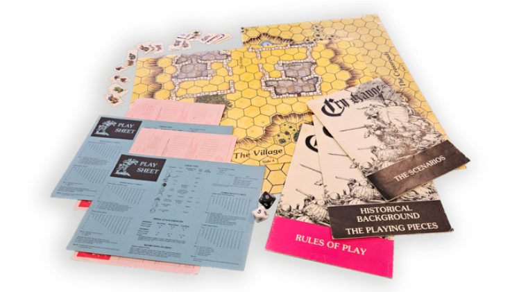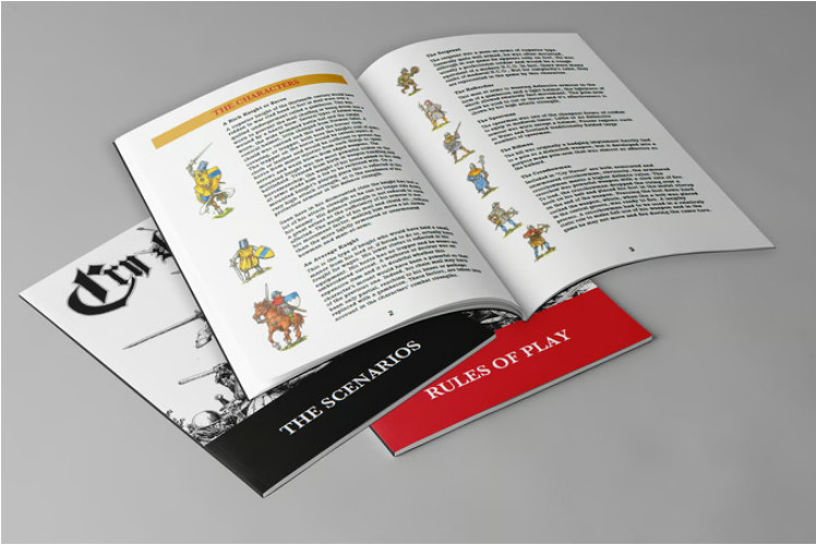- Historical Background & Playing Pieces: A 12-page A5 full-colour booklet exploring warfare in the 13th century and describing the game’s various playing pieces.