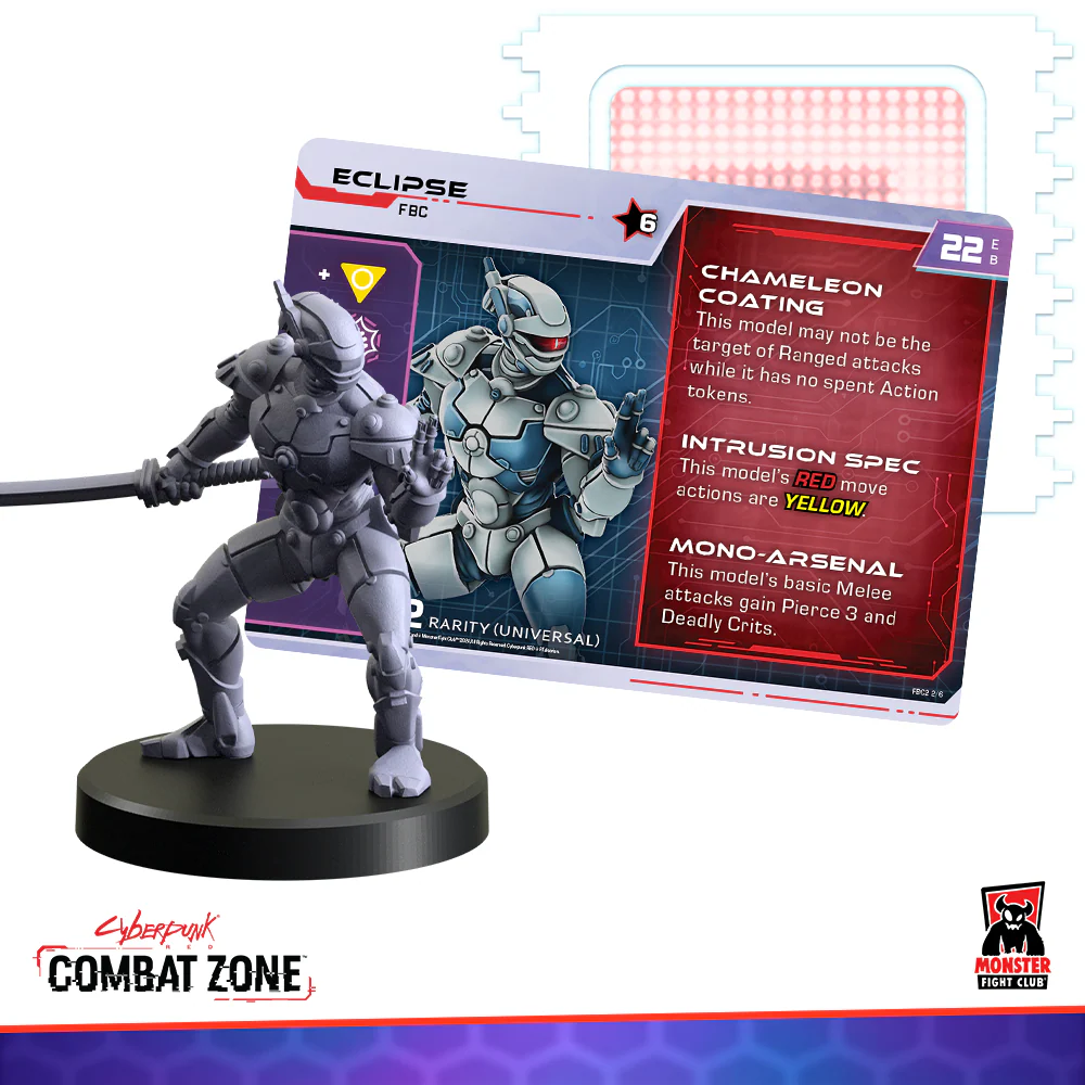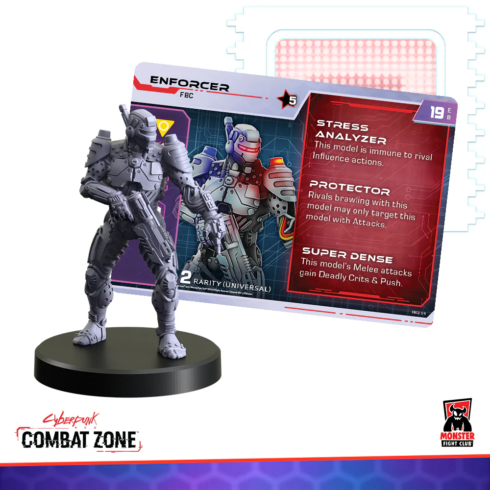 Each model in the set is paired with a Full Body Conversion (FBC) card, detailing unique abilities and stats that reflect its advanced cybernetic design. These tarot-sized cards function much like gear cards, seamlessly replacing your Character’s model without altering their stat card. Instead, the FBC grants powerful upgrades and new combinations of abilities.