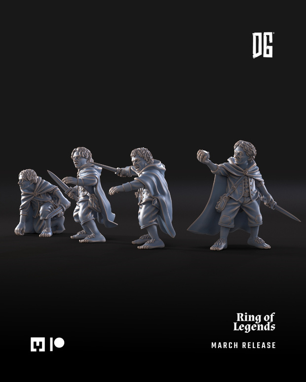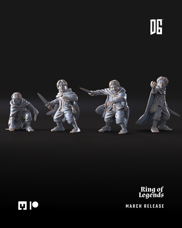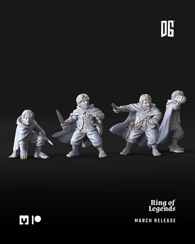 Hello, everyone!Four of the nine adventurers in March are quite small in stature: they belong to our army of halflings. But despite being shorter than the rest, they are incredibly brave and ready for anything that comes their way.The attached painted images were created using artificial intelligence and are intended as painting inspiration only.March Release | AdventurersRing of LegendsBromli the DwarfVaragonLethalas The PrincePipren, Sammuel, Meric & Forin