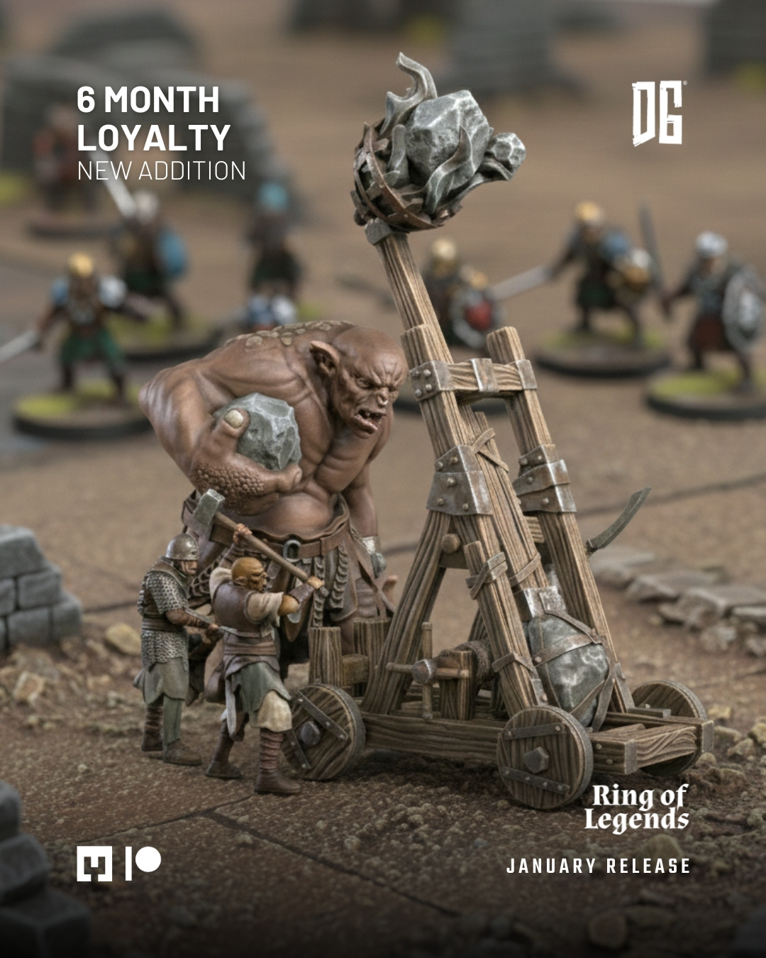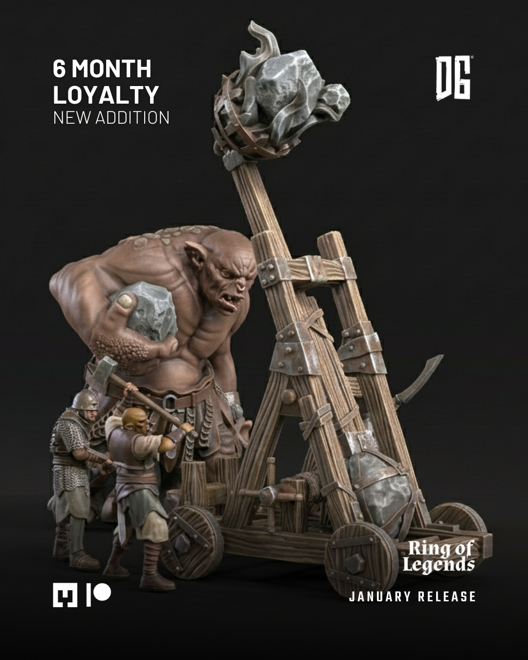 Hi everyone!This month we’re adding a new bonus to the 6-month subscription reward. It’s a catapult with crew. The catapult will be available with stone and fire ammunition, or heads as ammo.What do you think?The 6-month reward now includes:January | Dark City of Morlok 2RING OF LEGENDS1x The Dark Lord1x The Wraith King ft and mtd. (opt. Dead Blade)1x Morlok Troll Drummer6x Morlok Riders with Shield and throwing spears6x Morlok Warriors with shield and sword6x Month loyalty: 1x Morlok Catapult (heads ammo & Fire) + Crew