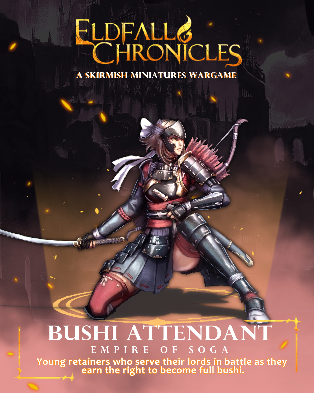 These elite warriors are known domestically as Ō-ban; each typically a branch-clan leader in their own right and a veteran field commander. Men and women alike may earn this distinction. Their status affords them the best equipment in the Empire: finely wrought weapons and the latest armors, fitted and tailored to the individual.