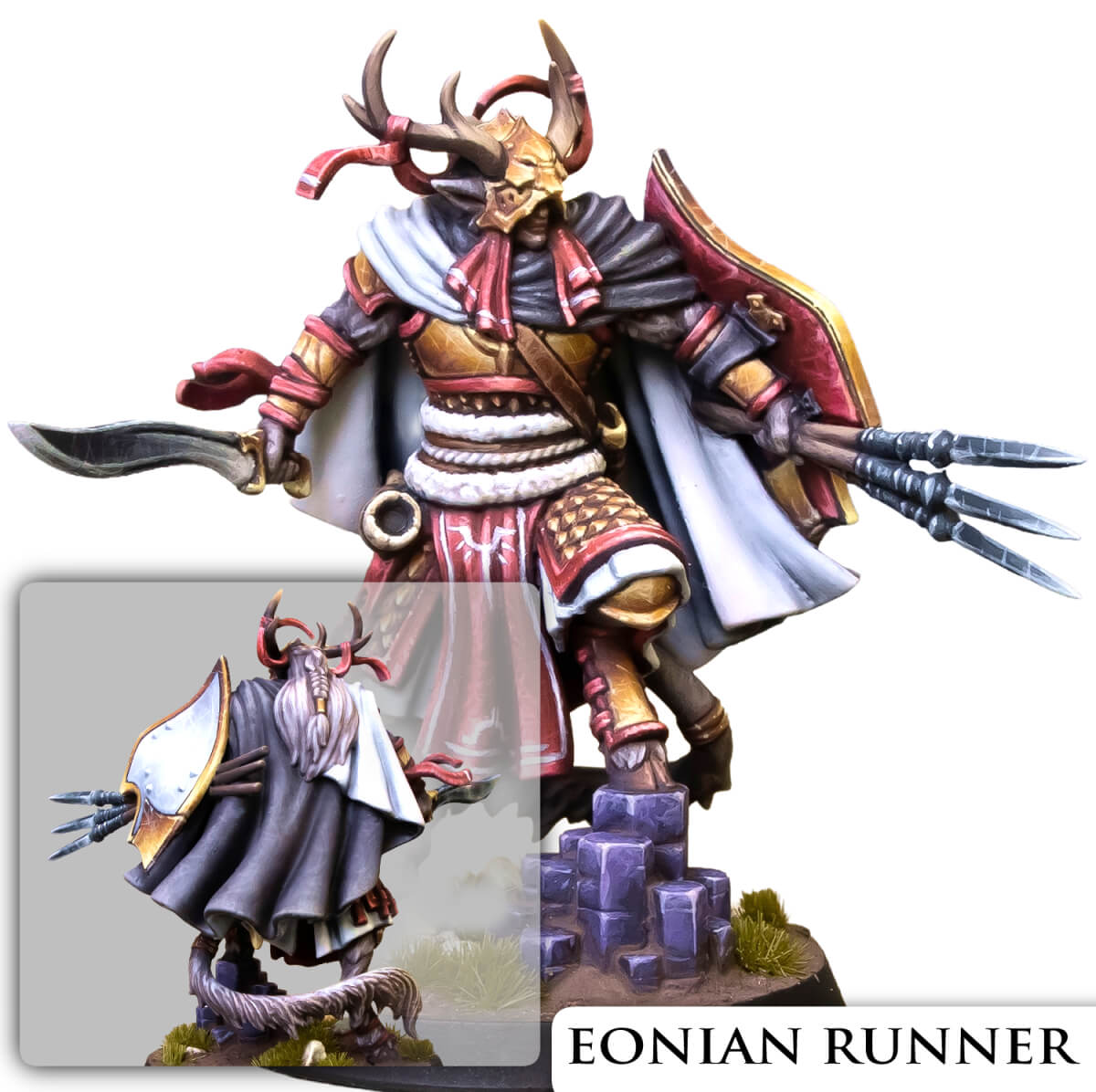 Beyond the walled Helrin cities live many allied tribes, often serving as irregular forces, filling gaps where the Helian Expeditionary Force is weakest. Among them are the Eonians — a chimeric people bearing the features of stags and other horned, hoofed beasts.