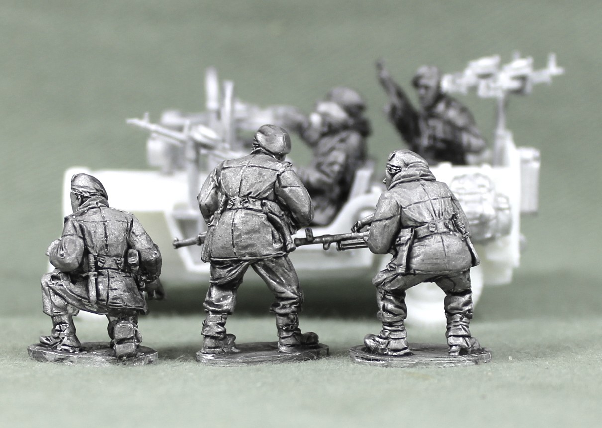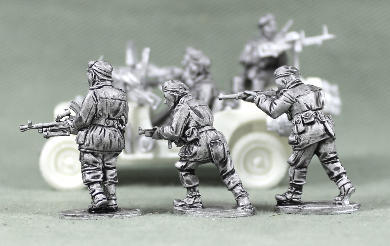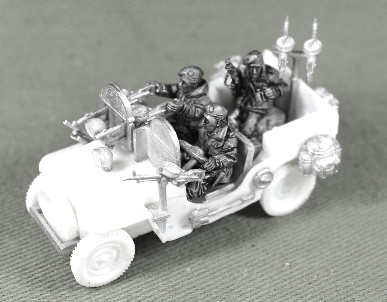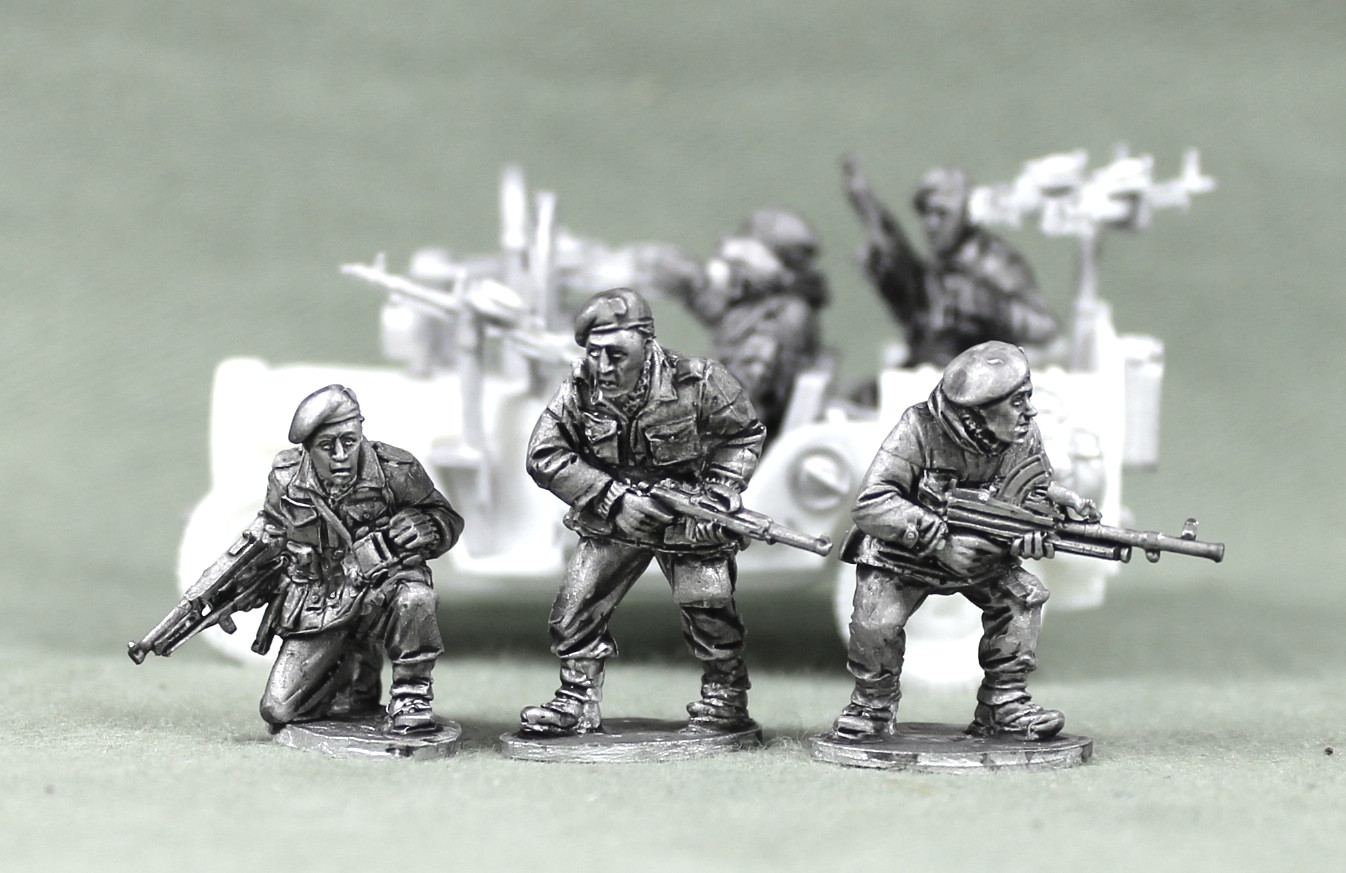 NEW RELEASE!!!!Two 28mm SAS JEEPS and crews released.SAS units were forward of the main armies for most of the NWE conflict in 1944/45. Notably during Market Garden as they patrolled trying to find ways through the German defences sometimes linking into Phantom Communications units.It was tasked with parachute operations behind the German lines in France and carried out operations supporting the Allied advance through France (Operations Houndsworth, Bulbasket, Loyton, Kipling and Wallace-Hardy), Belgium, the Netherlands (Operation Pegasus), and eventually into Germany (Operation Archway and Operation Howard).As a result of Hitler’s issuing of the Commando Order on 18 October 1942, the members of the unit faced the additional danger that they would be summarily executed if captured by the Germans. In July 1944, following Operation Bulbasket, 34 captured SAS commandos were indeed summarily executed by the Germans; in October 1944, in the aftermath of Operation Loyton, another 31 captured SAS commandos were summarily executed by the Germans.Worth noting than in March 1944 the SAS units were merged into airborne command and swapped their famous sand berets for airborne maroon.