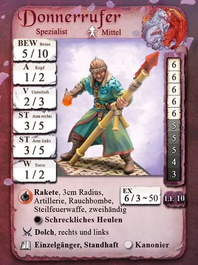 Dringende Unterstützung im Fernkampf für die Tianyu: Raketen auf 50 cm Reichweite! Und als Sahnehaube noch ein schreckliches Heulen – wer kann den Donnerrufer nicht in seiner Mannschaft haben wollen?