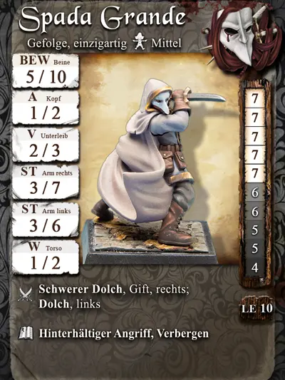 Teile: 4Der Figur liegt die Charakterkarte mit allen für Freebooter’s Fate benötigten Spielwerten bei. Die Metall-Figur wird unbemalt und in Einzelteilen geliefert und muss noch zusammengebaut werden.
