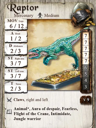 Raptor ist ein Söldner. Er kämpft nur für die Amazonen, Debonn, Goblin-Piraten, Piraten oder Tianyu.
