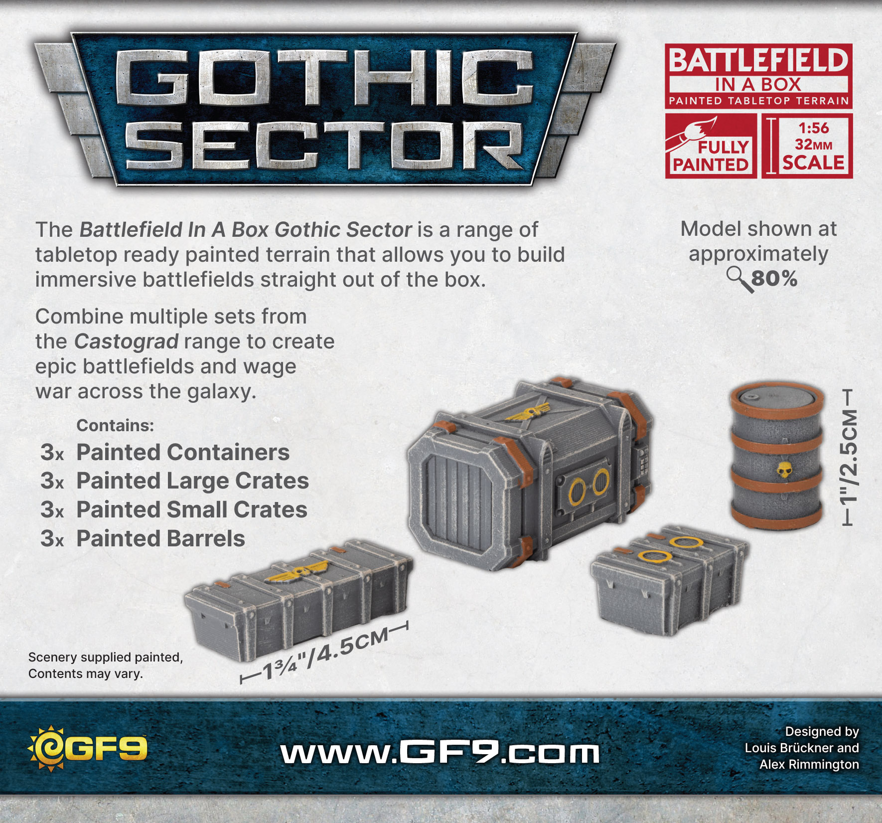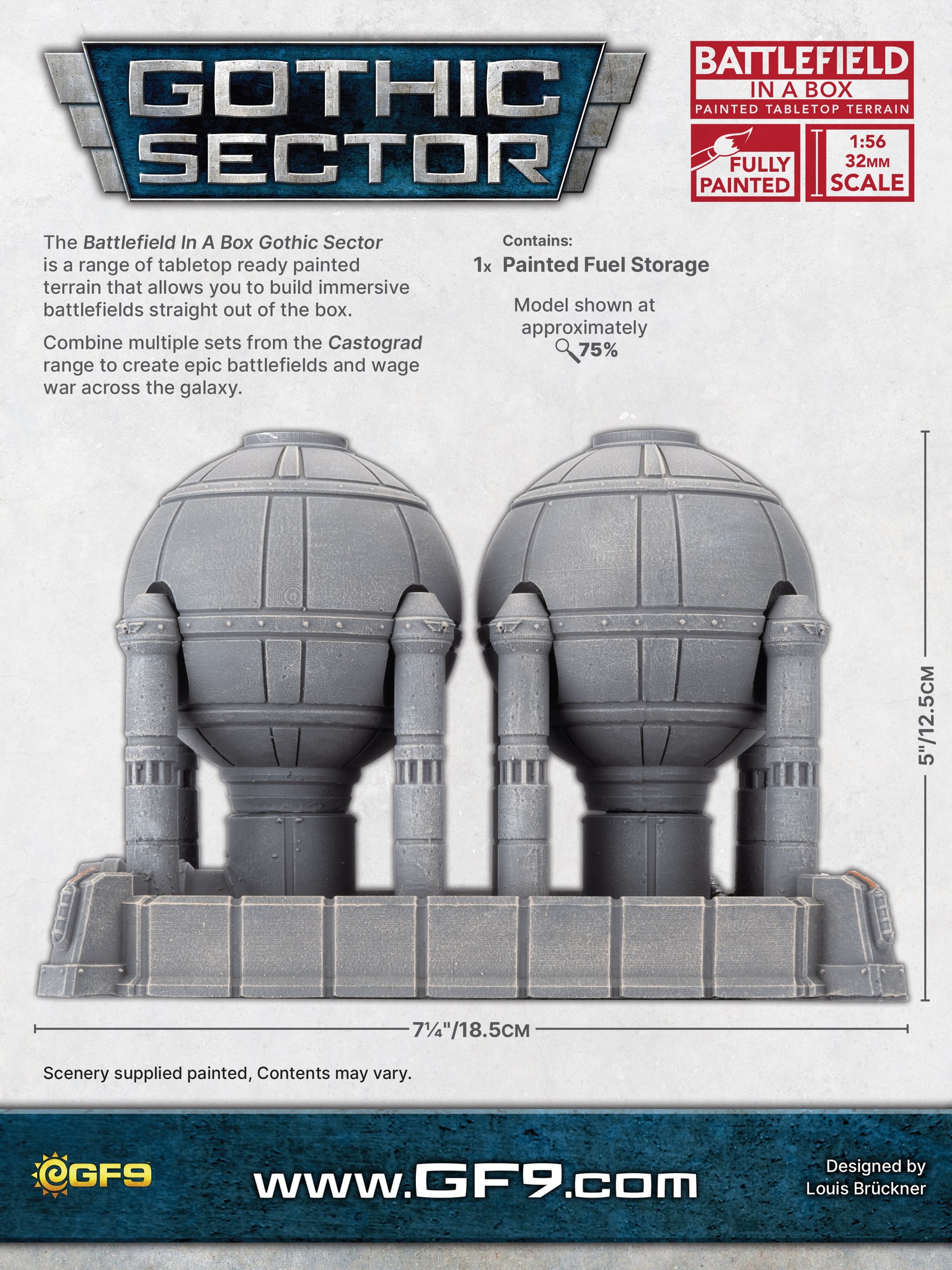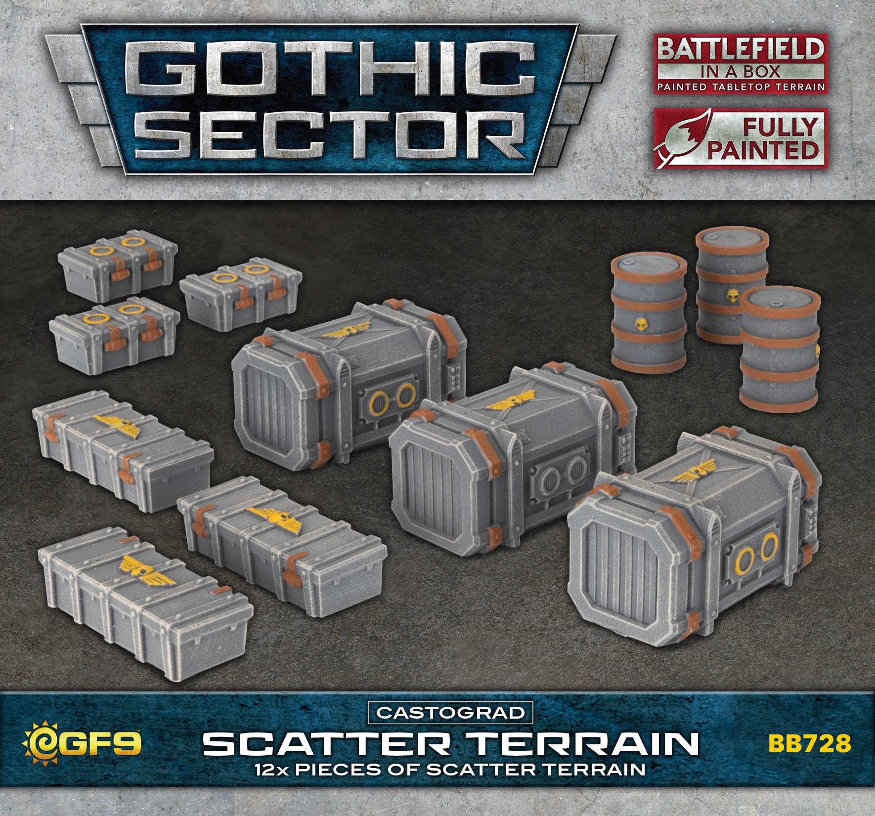 COMING SOON… Gothic Sector: Castograd joins the Battlefield-in-a-Box Painted Tabletop Terrain range and the first four sets launch worldwide in February 2026!– Fuel Storage– Scatter Terrain– Hab Block Small Ruins– Warehouse Small RuinsGothic Sector: Castograd pre-painted terrain is compatible with all 28-35mm scale games, including Warhammer 40,000, Kill Team, Star Wars: Legion and more!