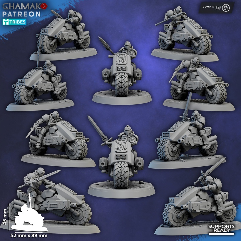 These bikes have been completely reimagined with a sleeker, more agile design, built for speed and aggressive maneuvers. While their mounted guns help weaken enemy lines, their true power shines in high-impact charges, where they tear through foes with precision and force.
