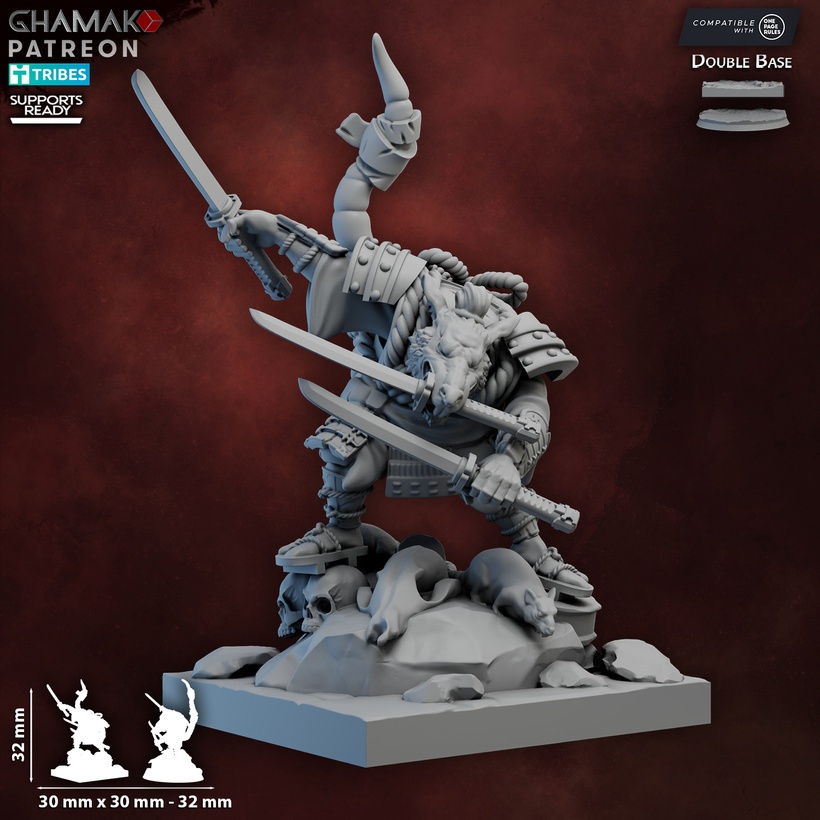 The April fantasy release was shaping up nicely and we were hoping to share it with you before Easter. While that did not work out, we still managed to have almost everything ready this week. The bone centaurs will be available in the next few days, but we don’t want to keep you waiting longer to start printing the other models.This release brings 19 models across two factions: the sinister Nezumi Clan and the darkly elegant Exiled Court. You’ll get two cavalry units for the Exiled Court (one aligned with the Path of Destruction and one with the Path of Death), two complex centerpiece models, the coolest demonic rat lord we’ve created so far, and to top it all off—two awesome heroes ready to lead your forces.