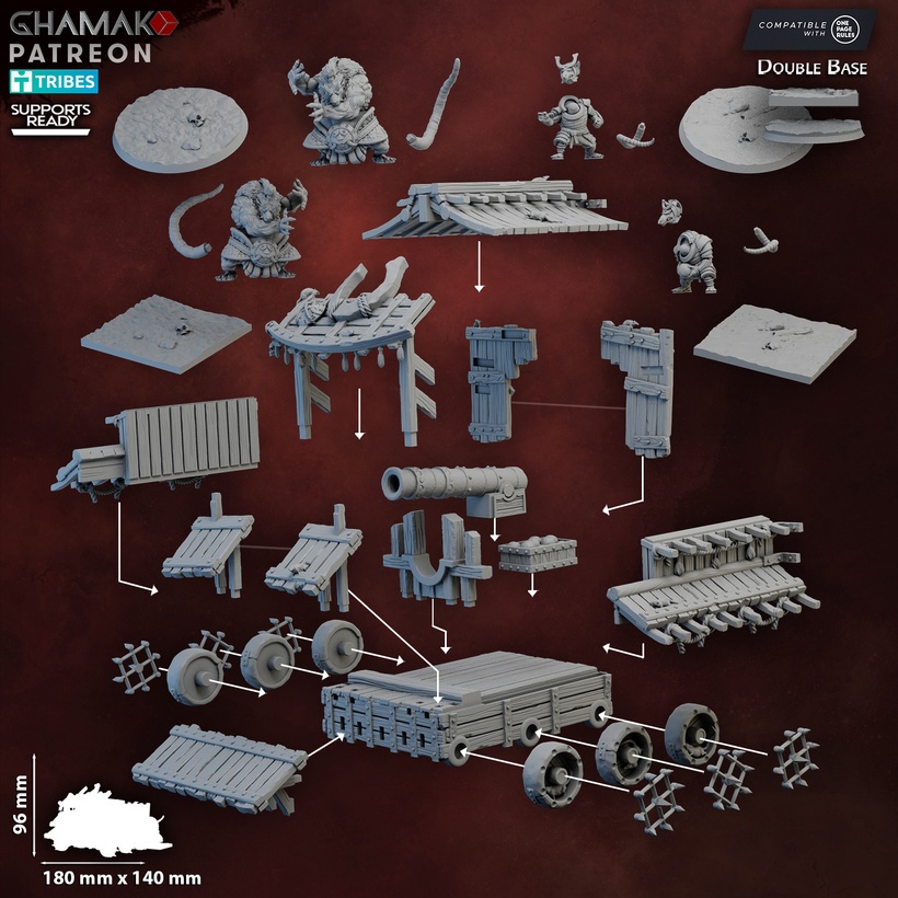 This massive war machine is one of the largest models in our catalogue. It’s a model packed with character and details, from the strain of the creatures hauling it to the ominous presence of the cannon itself. Ideal for adding both heavy firepower and rat flavor to your force.