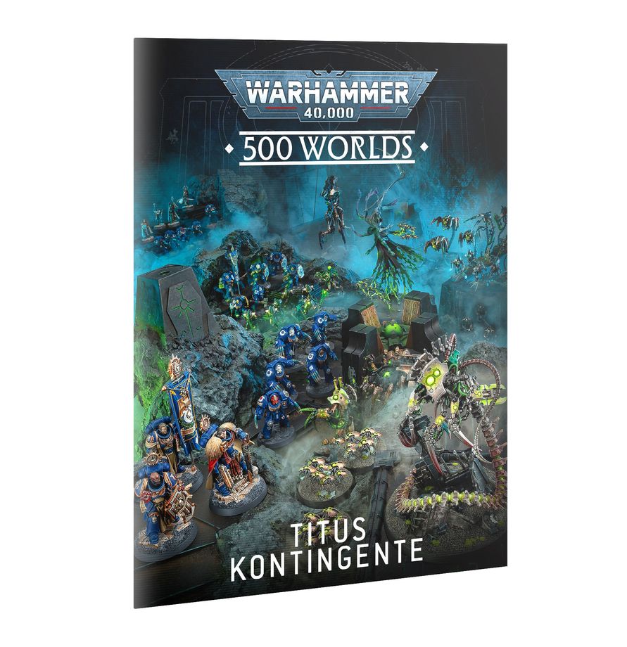 – 500 Welten: Titus – Kontingente – Ein 16-seitiges Heft mit je drei neuen Kontingenten für Space Marines (Sturmlandungsstreitmacht, Bastion-Einsatzverband und Rückeroberungsstreitmacht) und Necrons (Pantheon des Leids, Verfluchte Legion und Kryptomanten-Konklave).