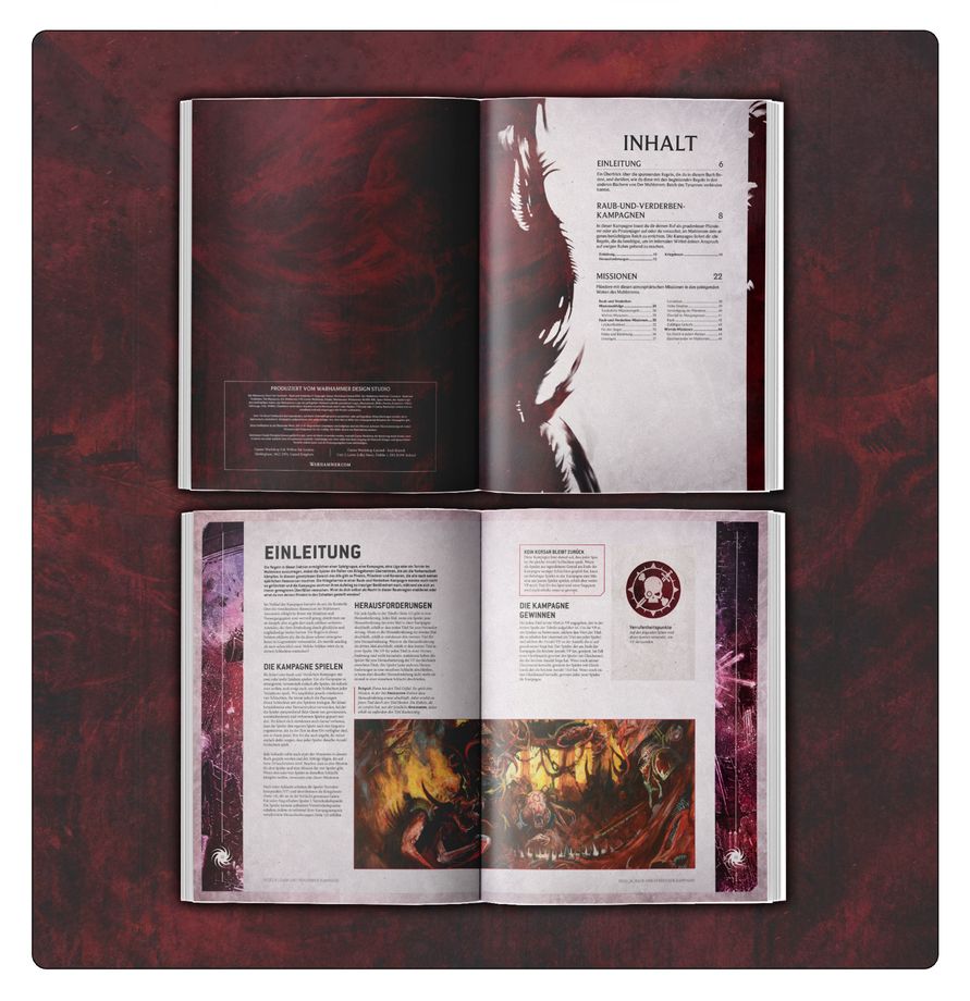 – Der Mahlstrom: Reich des Tyrannen – Raub und Verderben – Ein 48-seitiges Softcover-Buch mit einer narrativen Kampagne um Macht und Beute im Mahlstrom, zusammen mit Missionen für das ausgeglichene Spiel: zwölf Aufmarsch-Missionen, zehn Raub-und-Verderben-Missionen und zwei Wirrnis-Missionen.