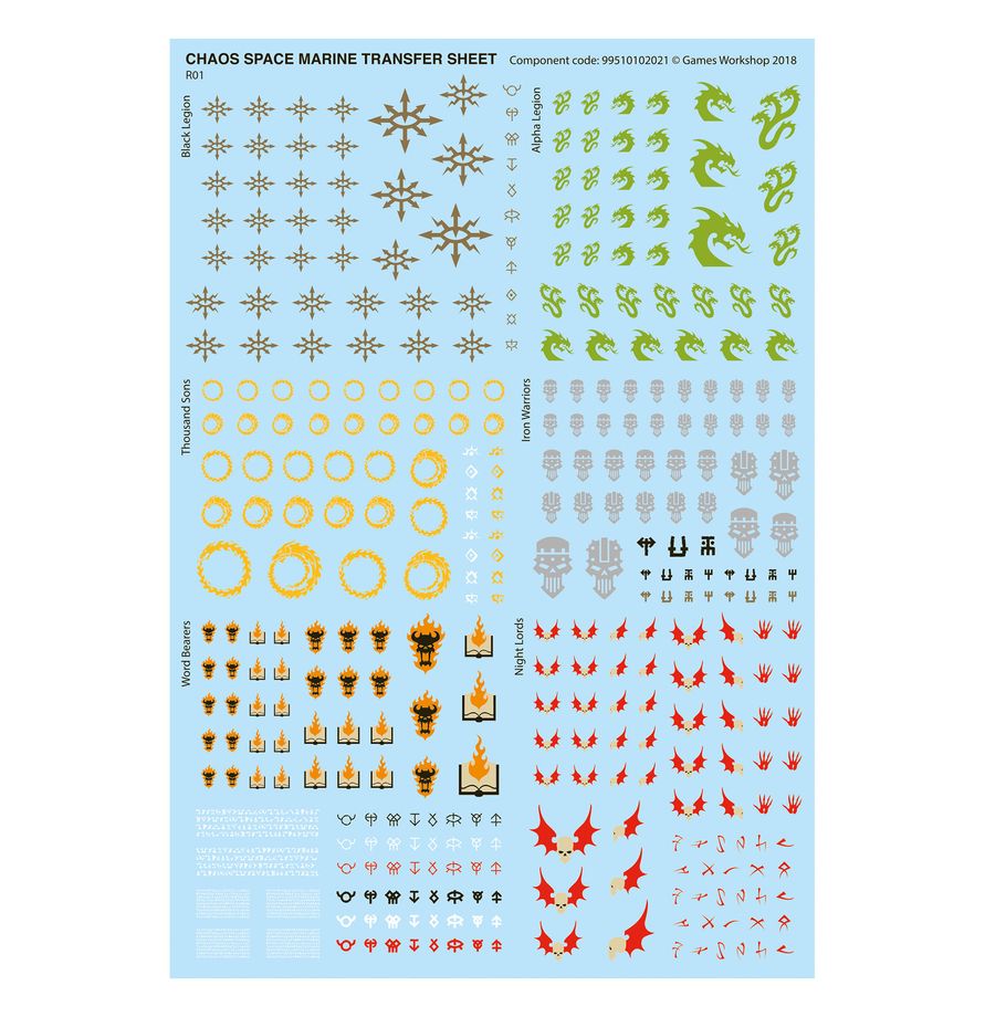 Dieser Bausatz enthält 1 Abziehbilderbogen der Space Wolves mit 419 hochwertigen wasserlöslichen Abziehbildern. Diese umfassen Symbole für die Großkompanien der Blackmanes, Champions von Fenris, Blutschnauzen, Geisterwölfe und Deathwolves sowie Fahrzeug- und Sagazeichen.